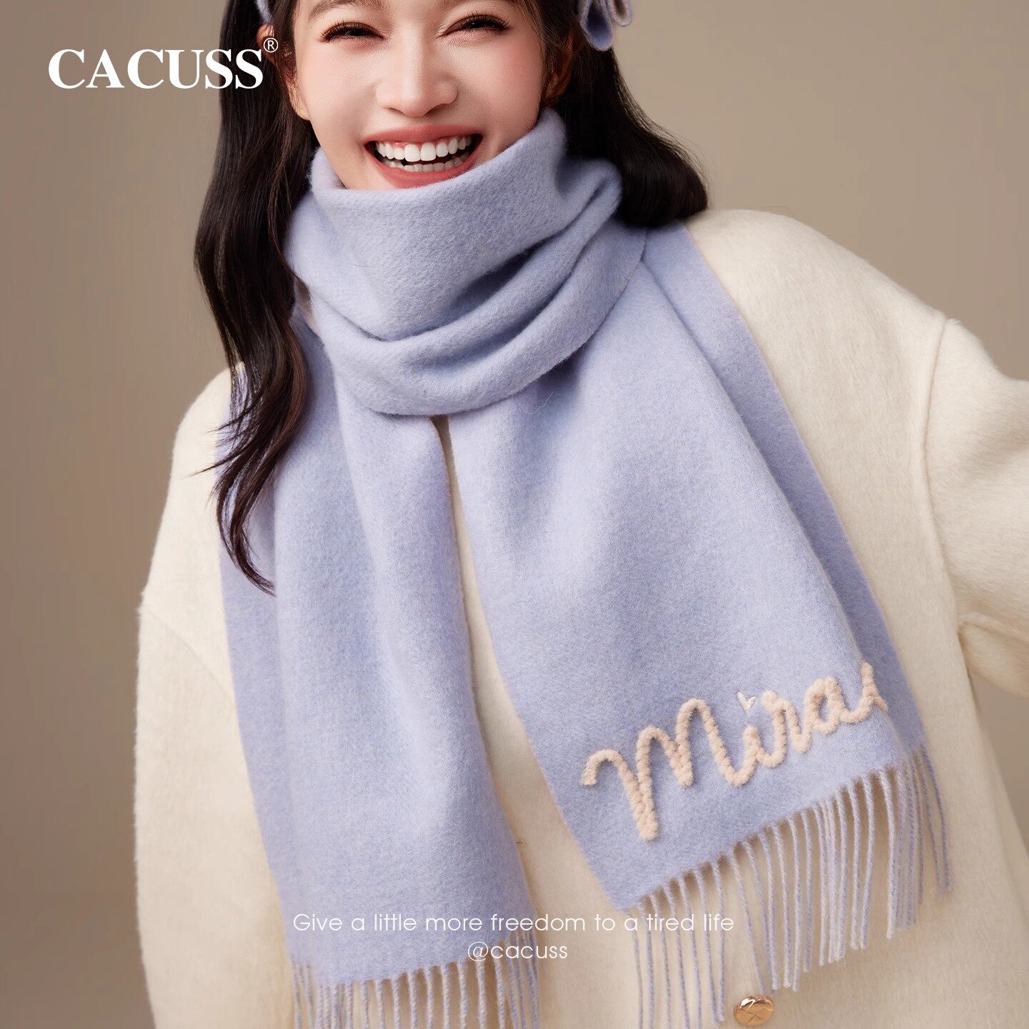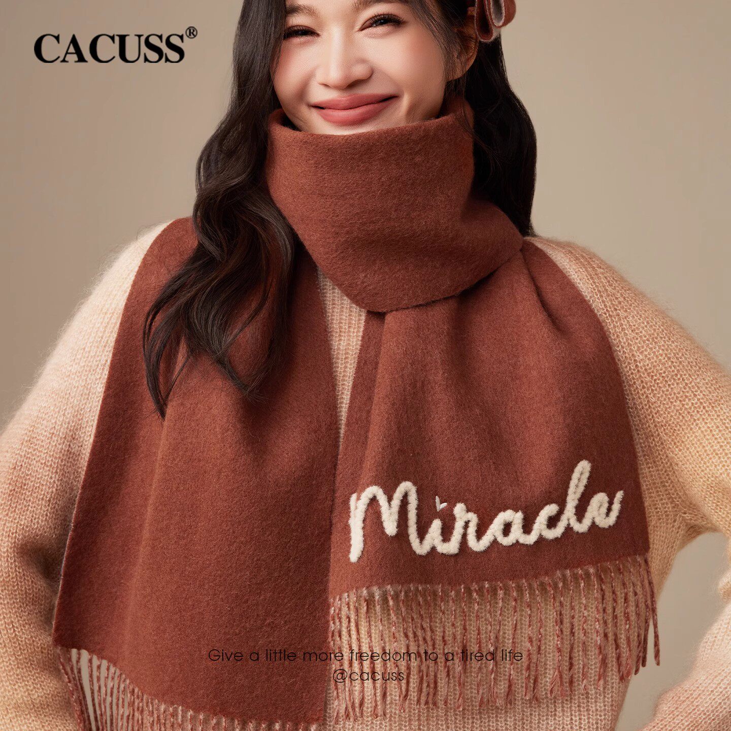 📚 CACUSS纯羊毛围巾女冬季新款双面撞色流苏围脖保暖防寒披肩礼盒装