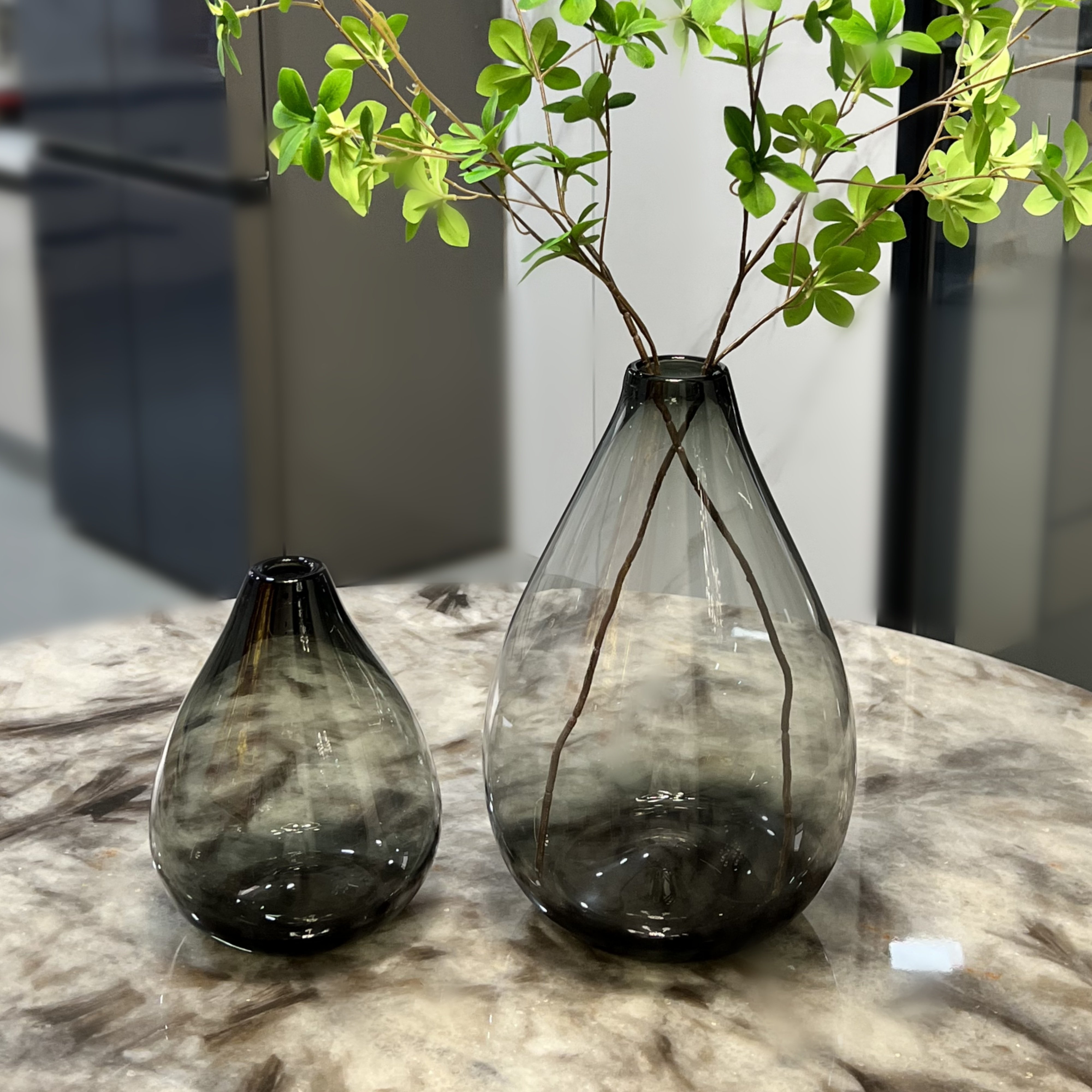 大肚透明玻璃花瓶吊钟马醉木落地现代摆件客厅样板间小口北欧简约