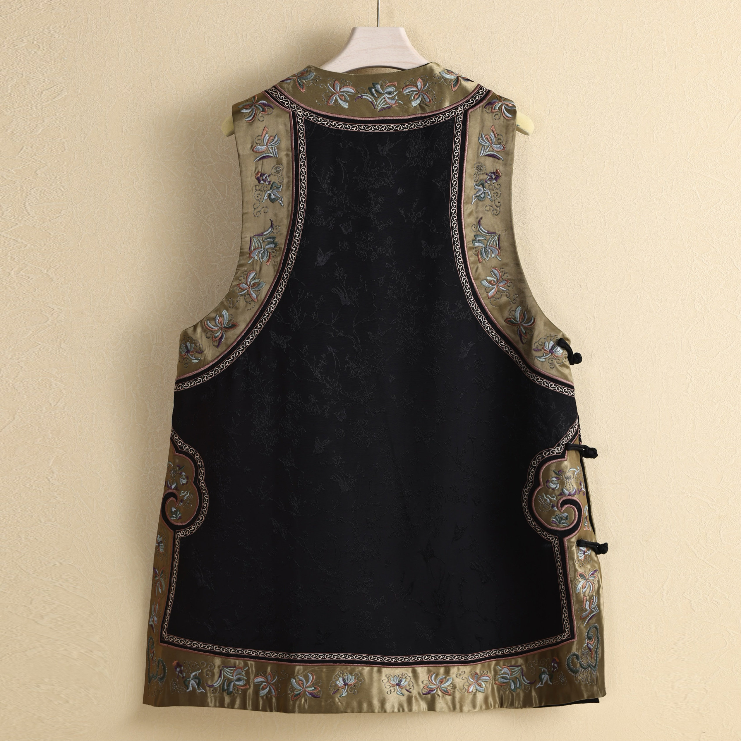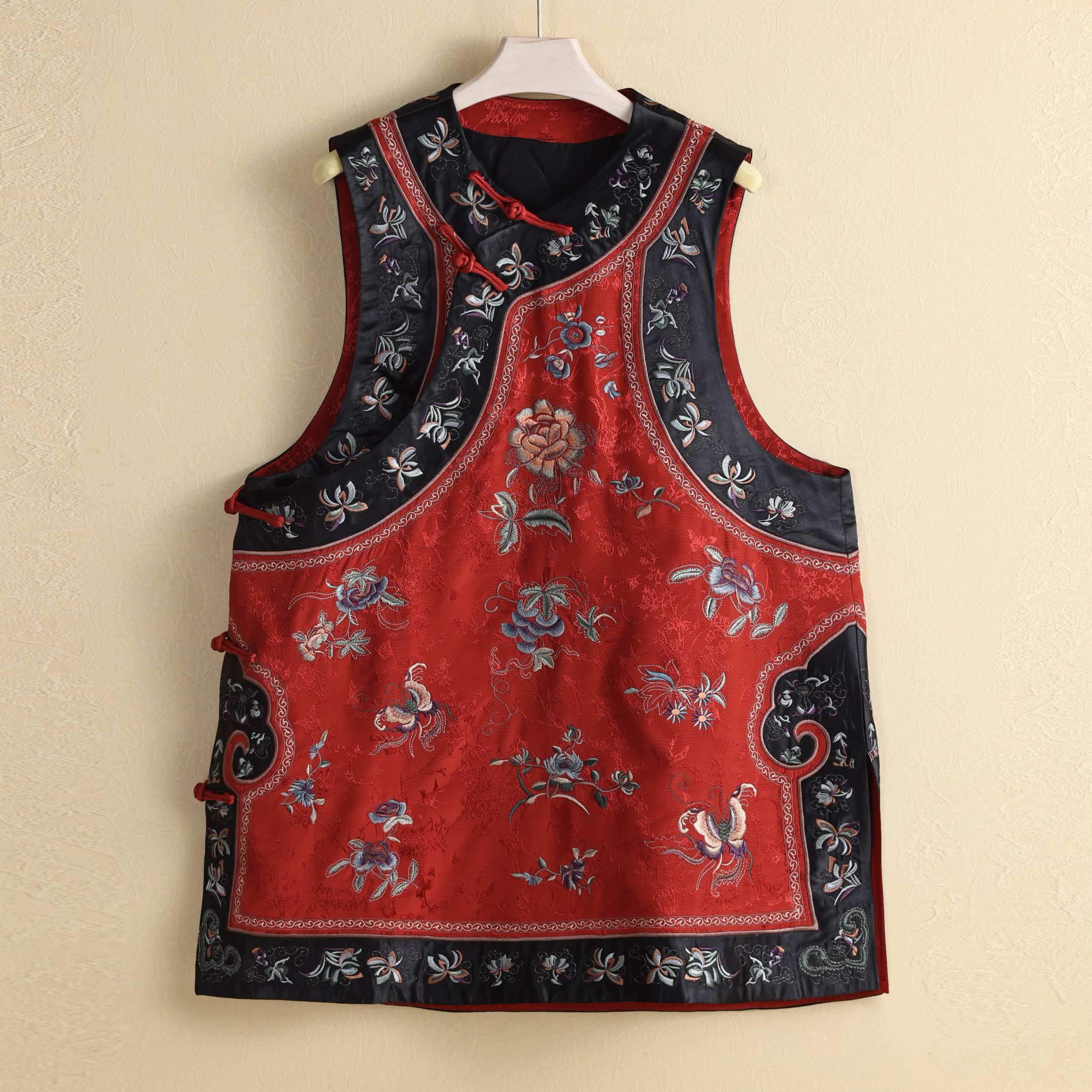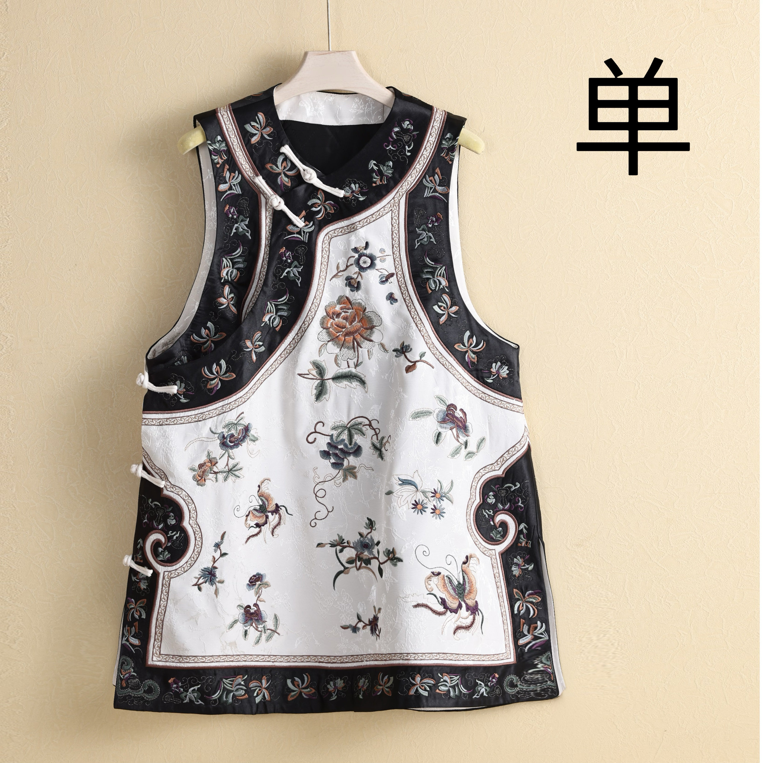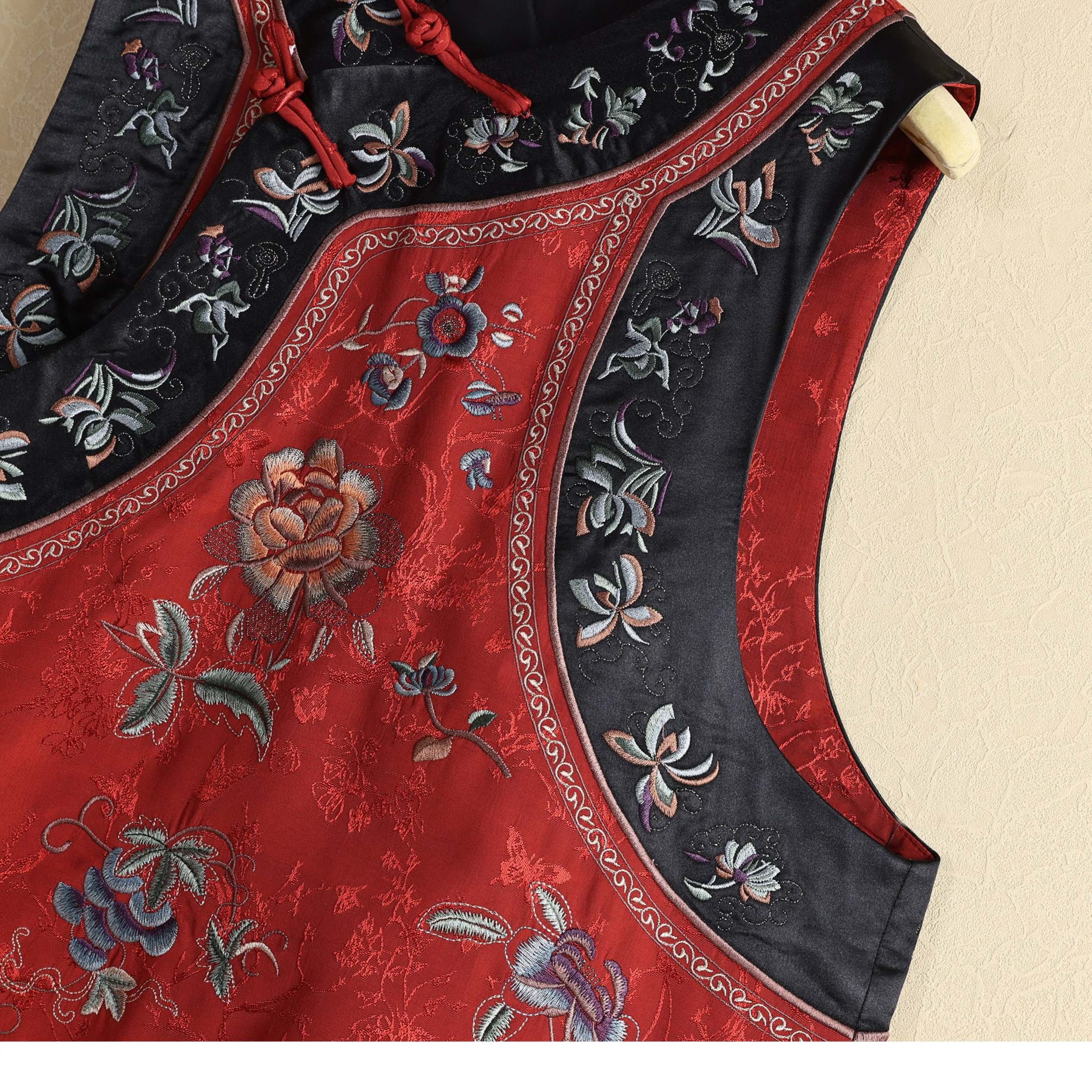 📚 新中式套头民族风绣花无领上衣斜盘襟无袖背心国风马夹中式马甲