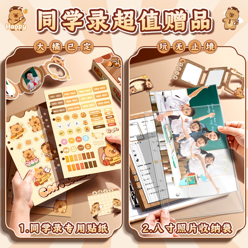 📚 卡皮巴拉同学录小学生六年级2026新款高颜值简约ing风小众男孩初中毕业成长纪念册女生活页本通讯录手册可爱