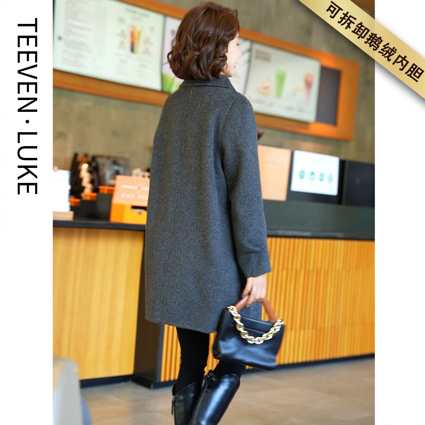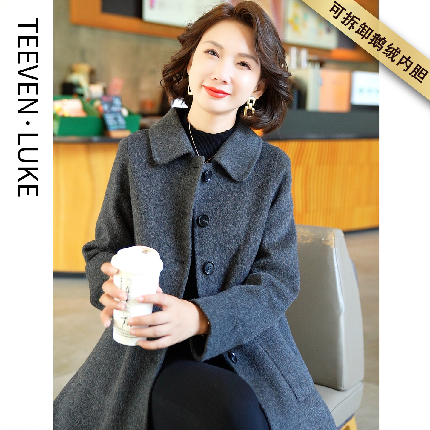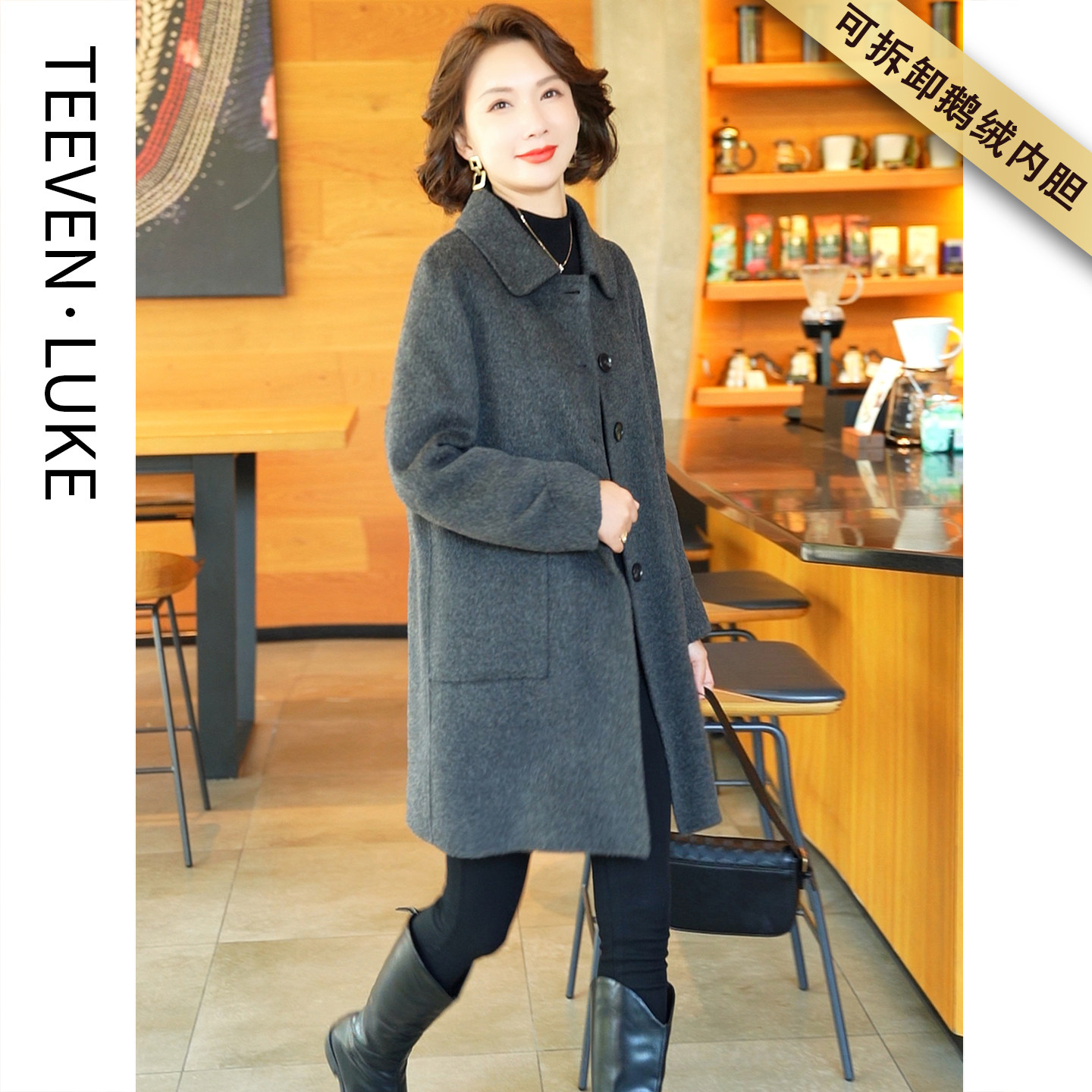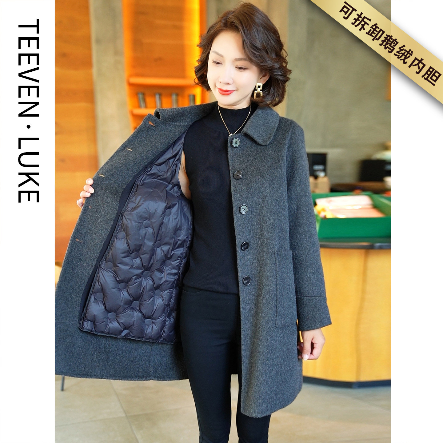 📚 2025秋冬新款可拆卸白鹅绒内胆时尚气质羊毛大衣双面呢韩版羽绒服