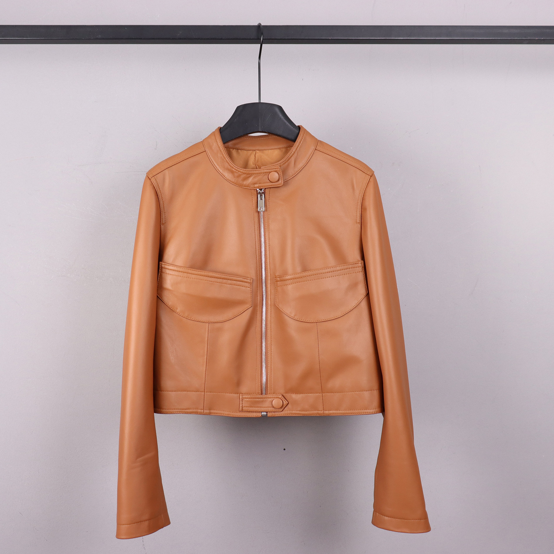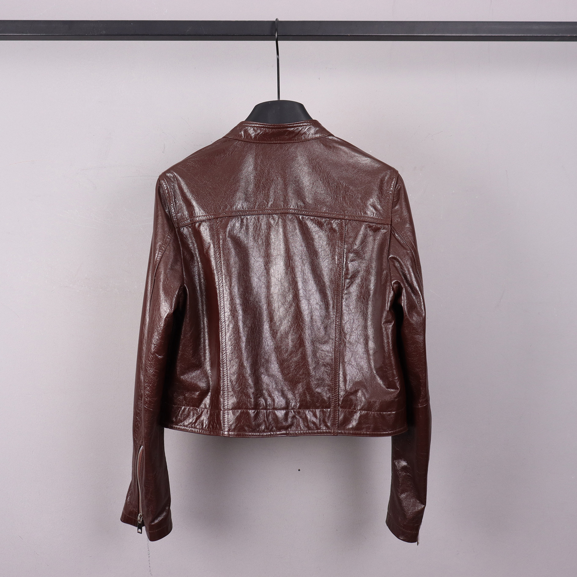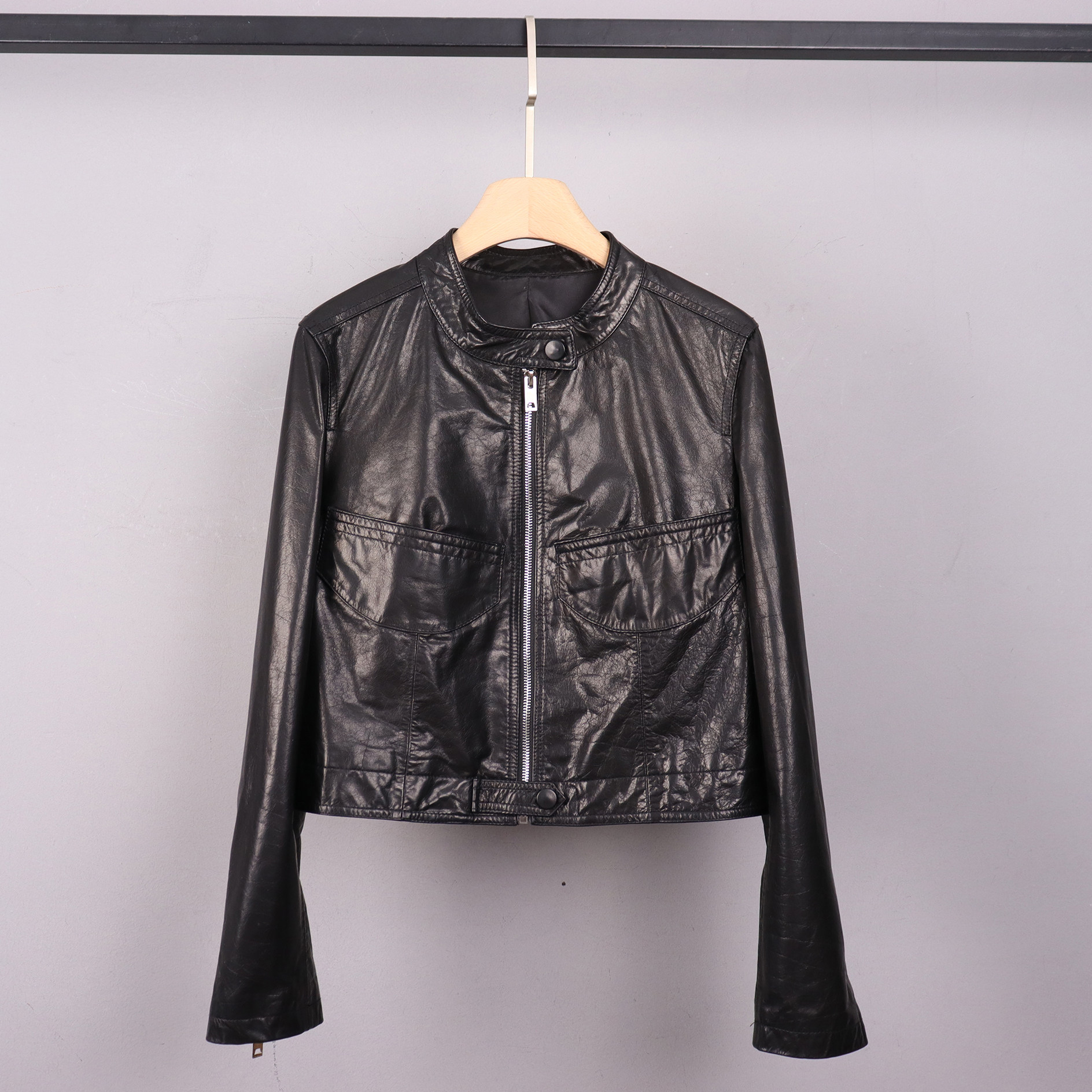 📚 复古风真皮皮衣女短款立领油蜡皮高级感修身显瘦机车拉链夹克外套