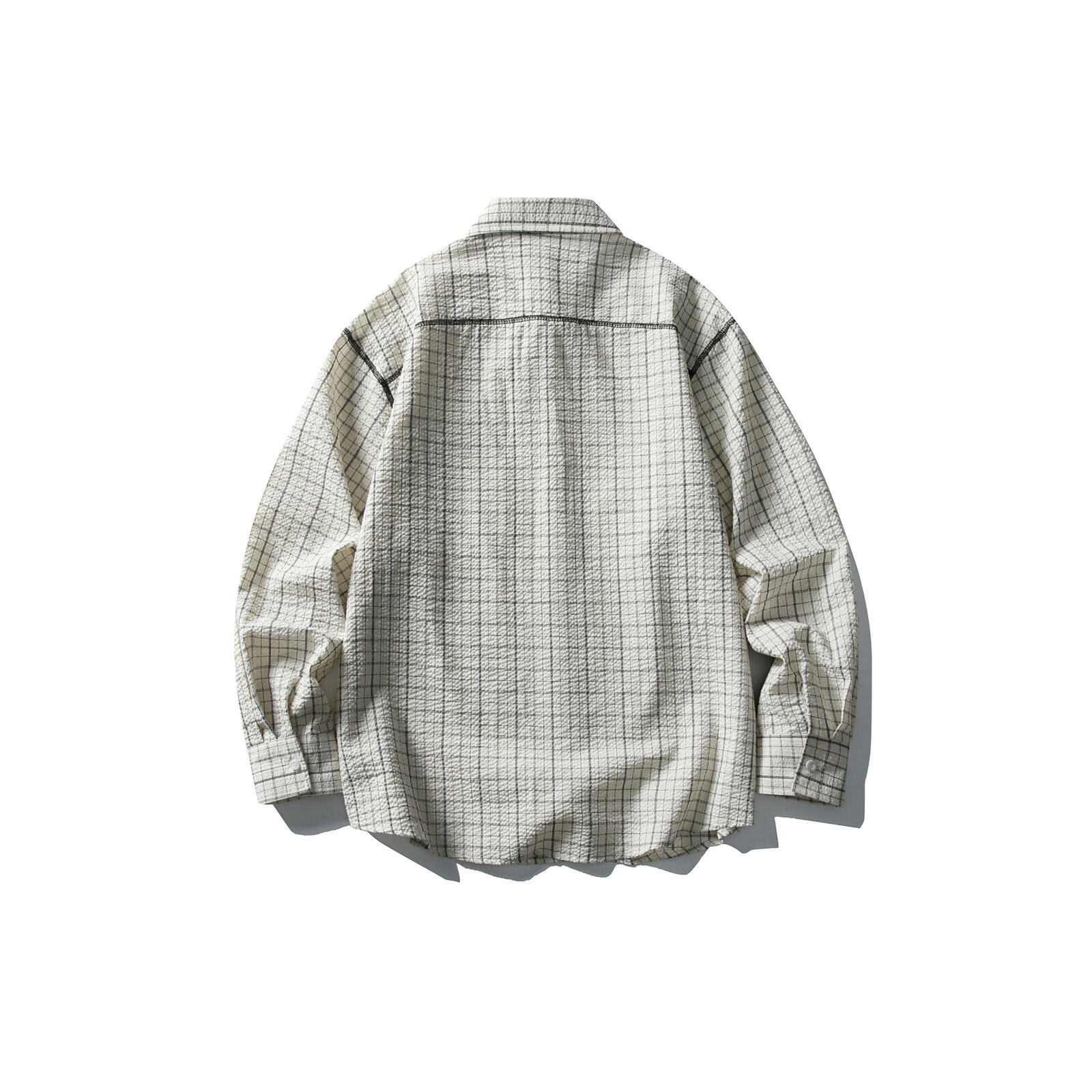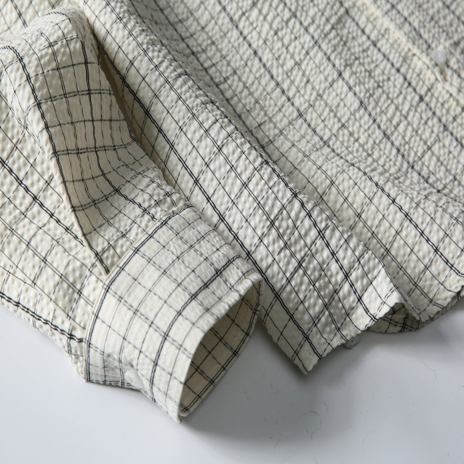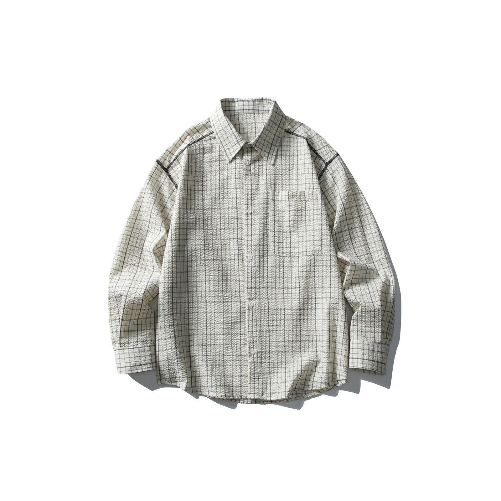 📚 潮牌春天日系泡泡纱格纹衬衣男士少年感文艺通勤衬衫春季宽松寸衫