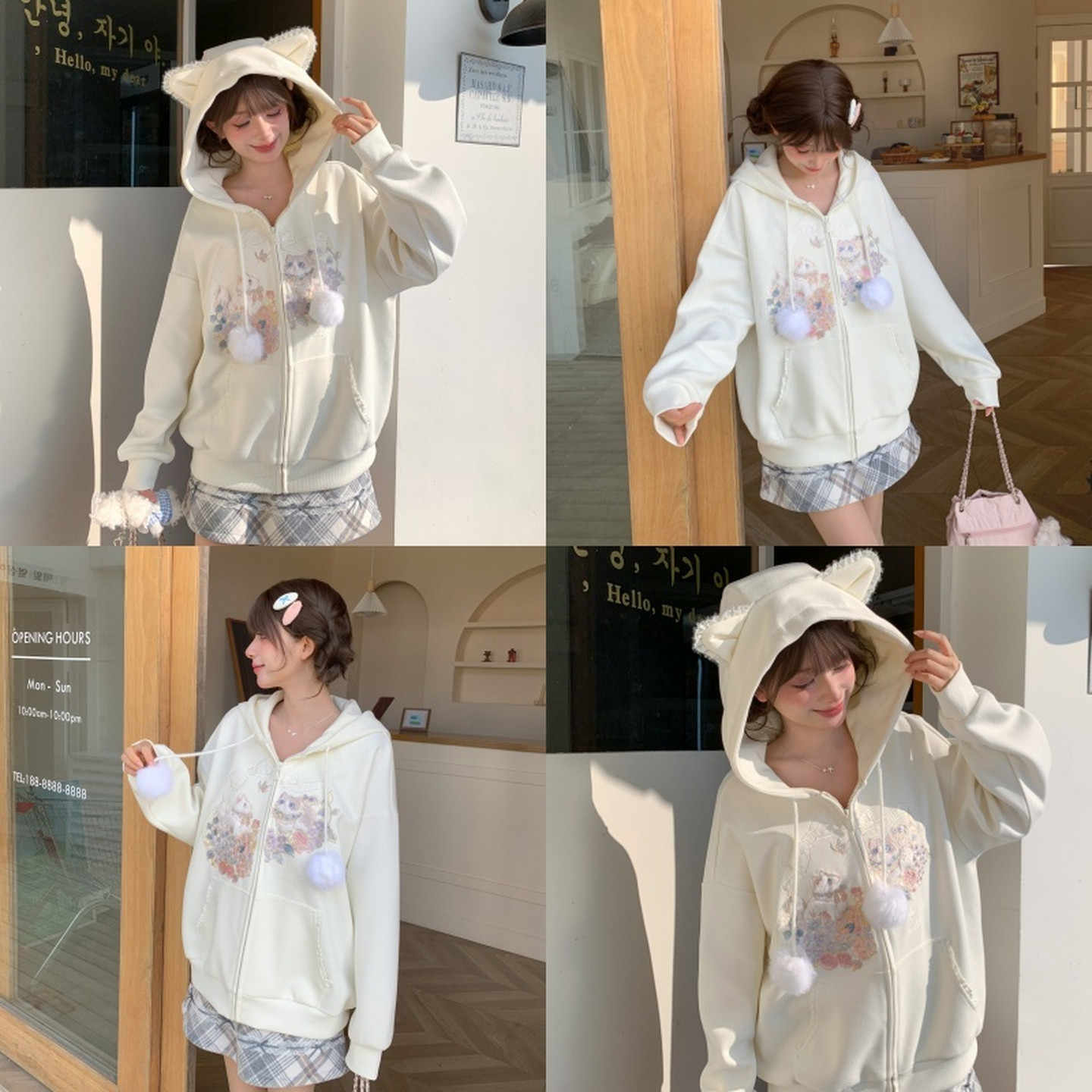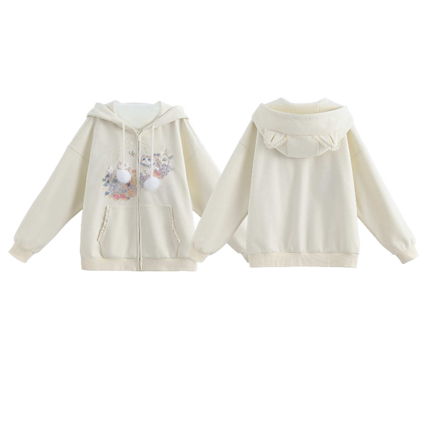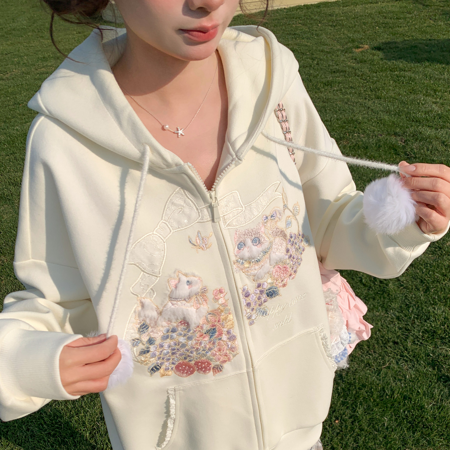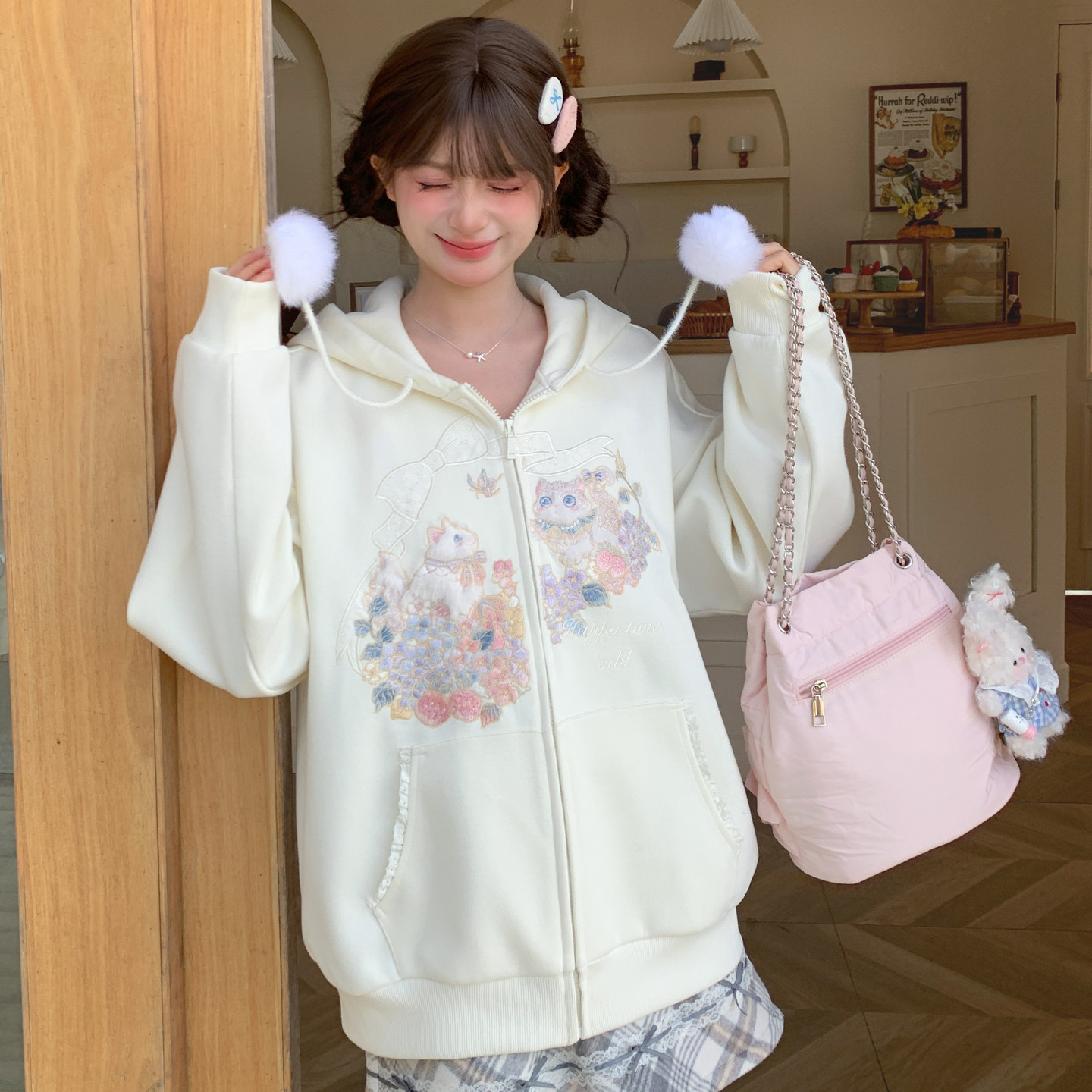 📚 森女部落甜美风百搭连帽外套女2026新款设计感猫咪刺绣宽松上衣春