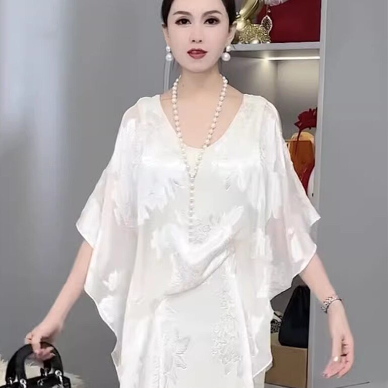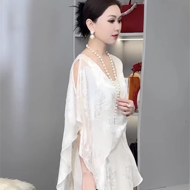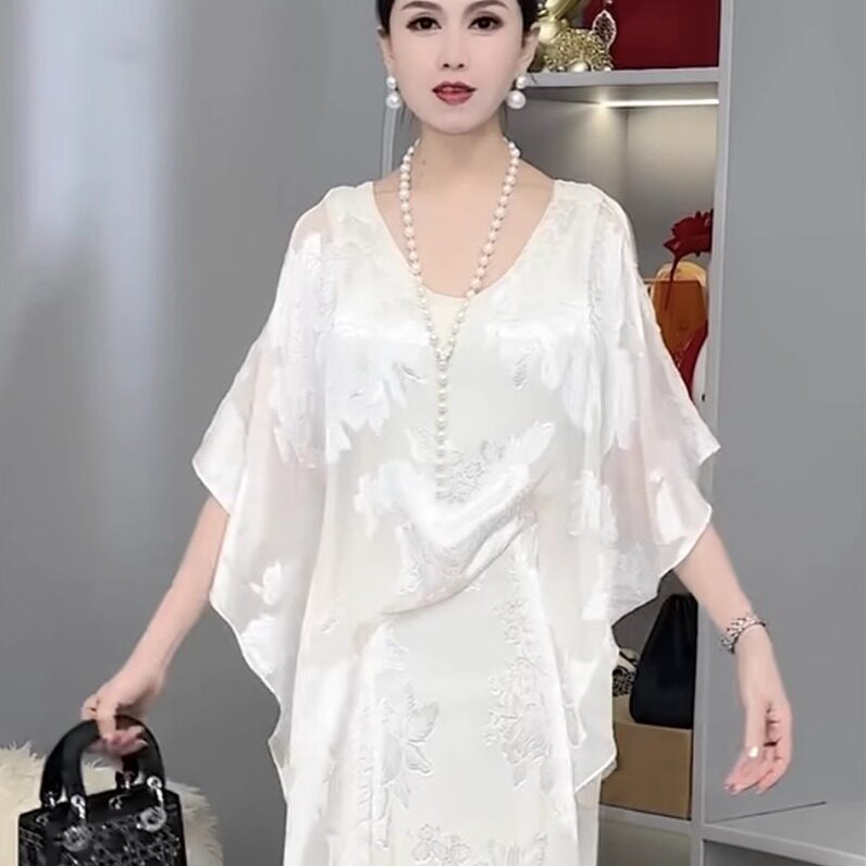 📚 赫本风2025爆款女装白色精品低领温柔淑女简约净版垂感连衣裙穿搭
