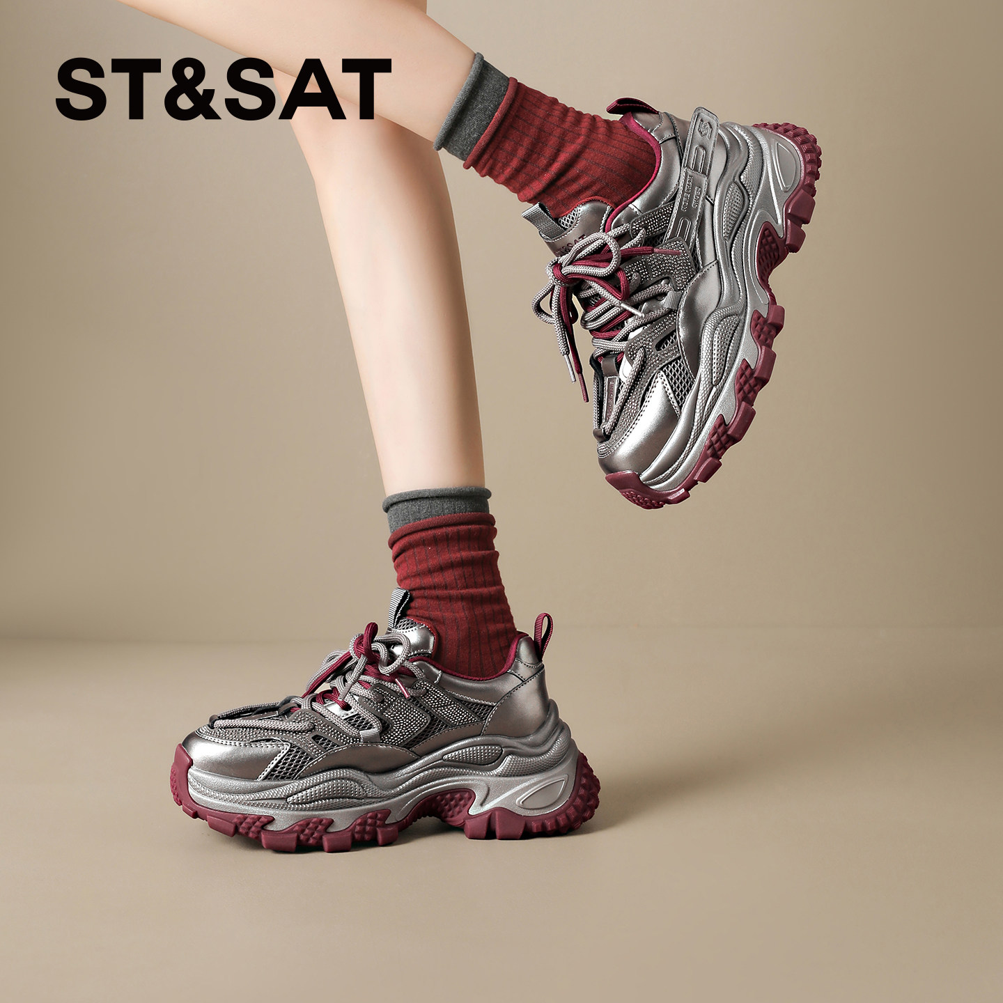 📚 星期六银色厚底老爹鞋女款新款春季女鞋增高鞋子女休闲运动鞋
