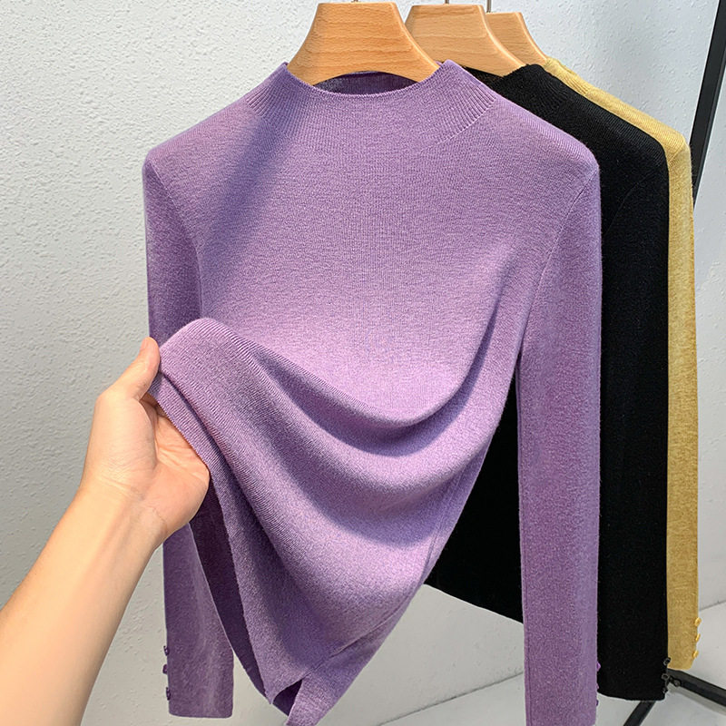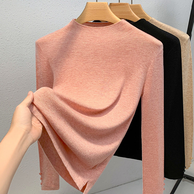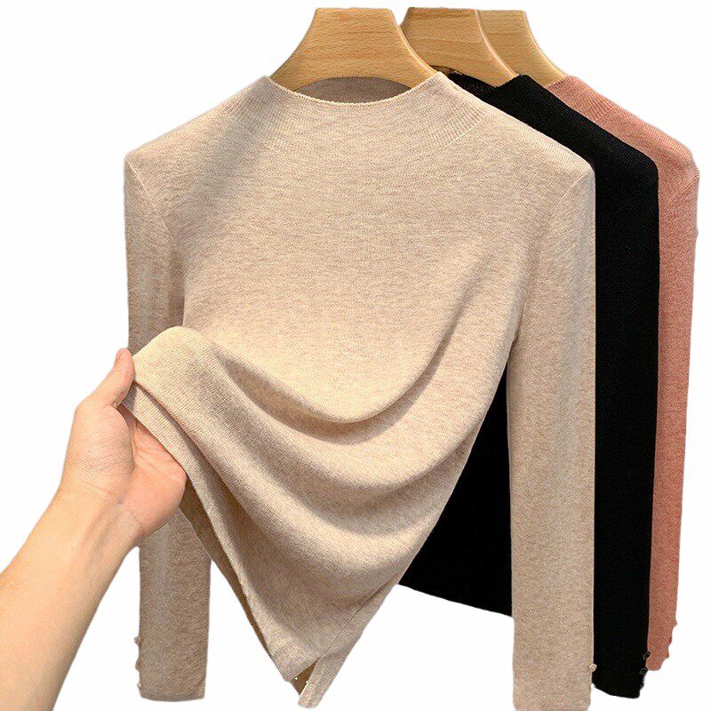 📚 半高领羊毛衫女春秋薄款内搭保暖上衣2026新款粉色毛衣针织打底衫