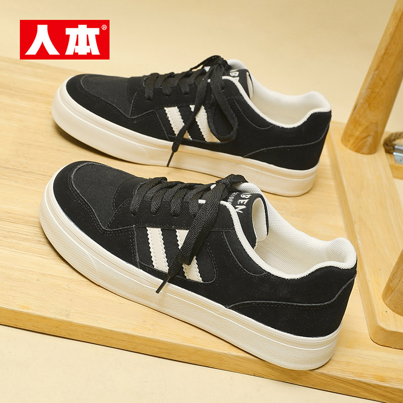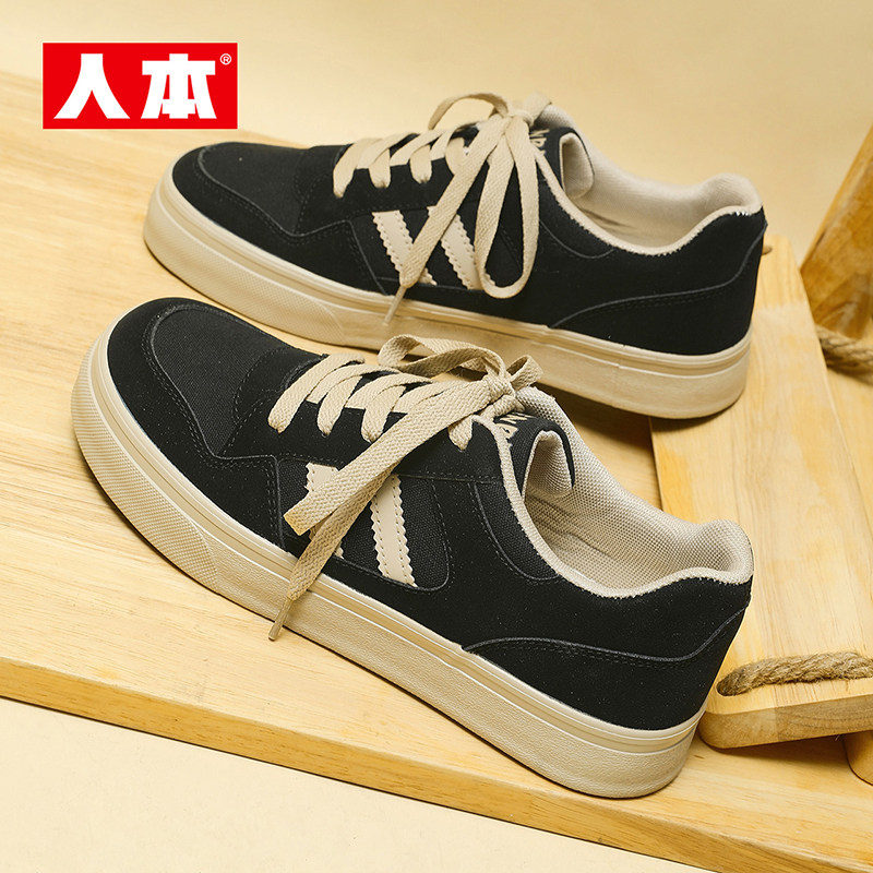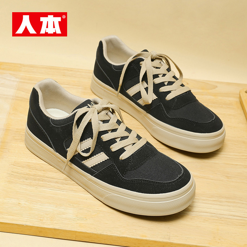 📚 人本官方正品复古帆布鞋男款2026新款低帮轻便防滑休闲男鞋大头鞋
