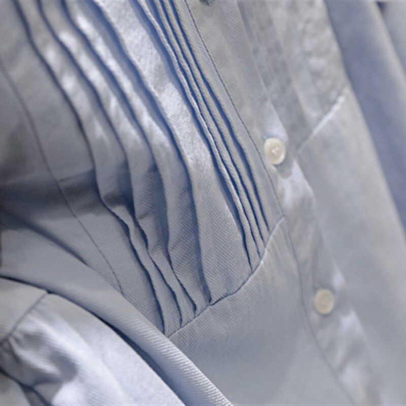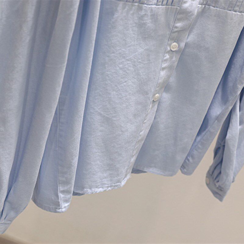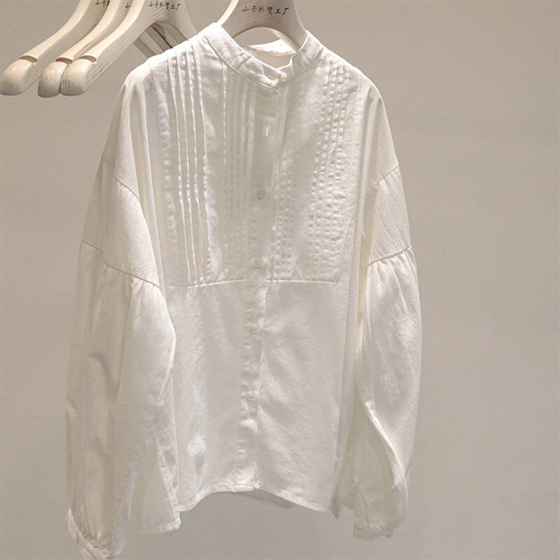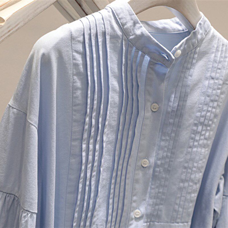 📚 法式宫廷风~立领褶皱设计单排扣复古文艺休闲长袖衬衫上衣