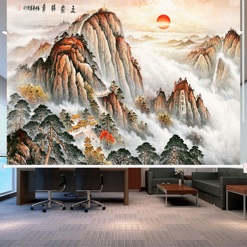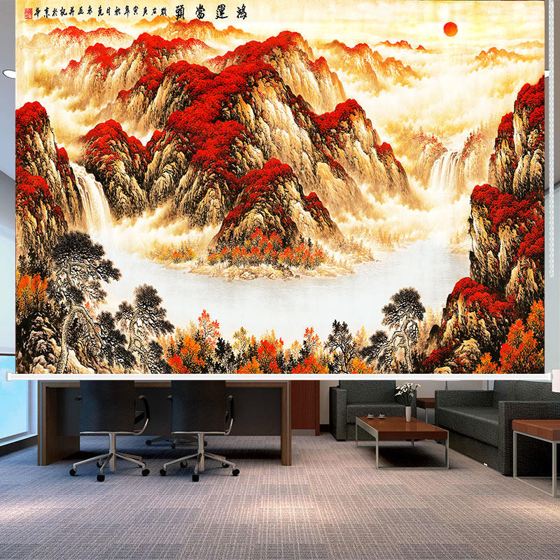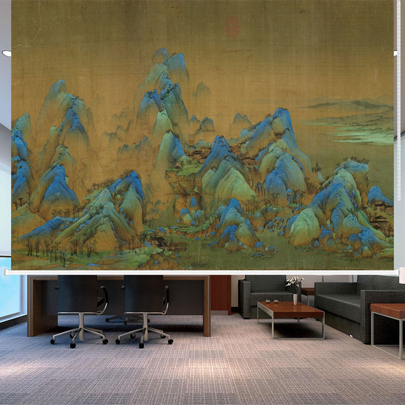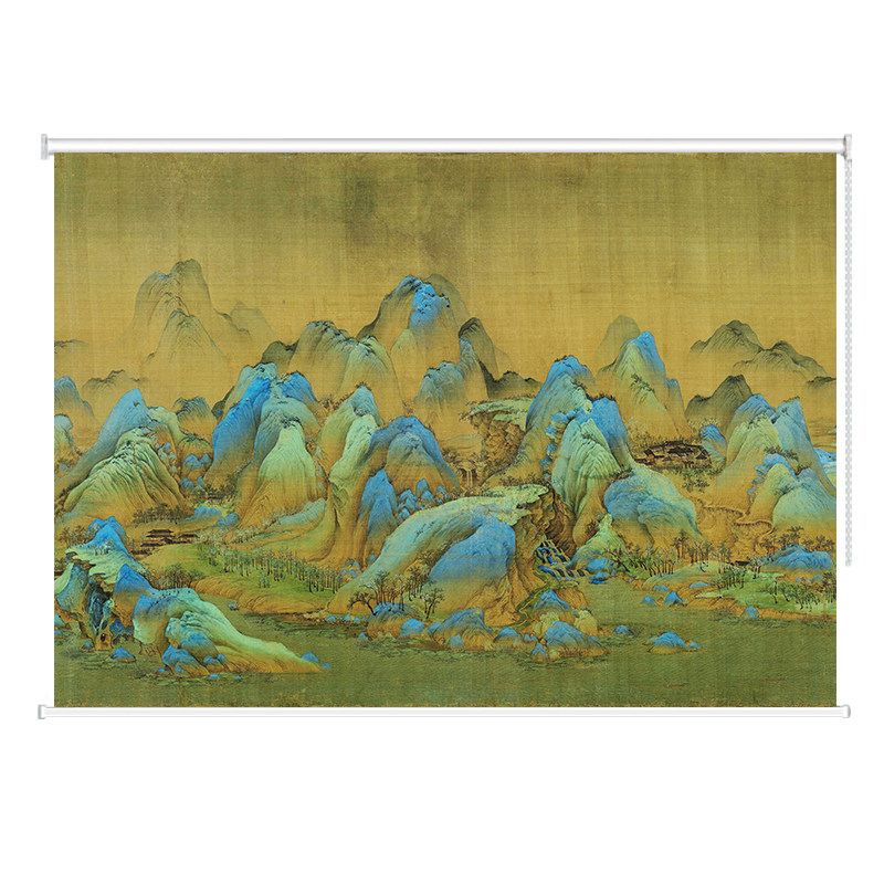 📚 定制千里江山卷帘窗帘办公室书房中式意境山水画遮阳遮光手拉升降