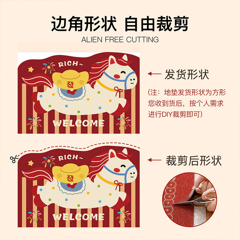 📚 2026新款红色入户地垫新年马年门垫丝圈可裁剪家用脚垫防滑除尘垫