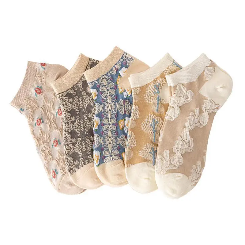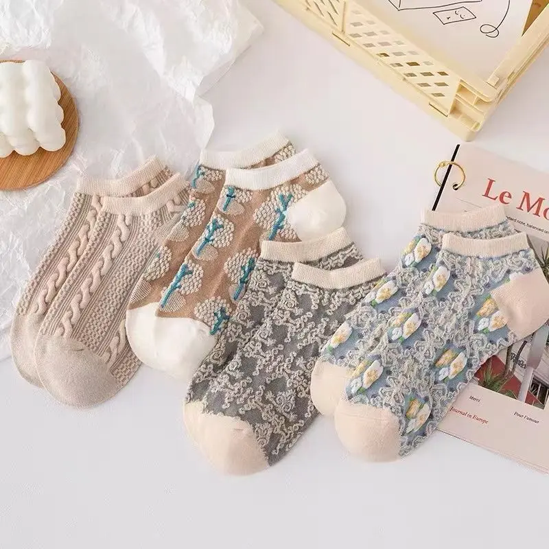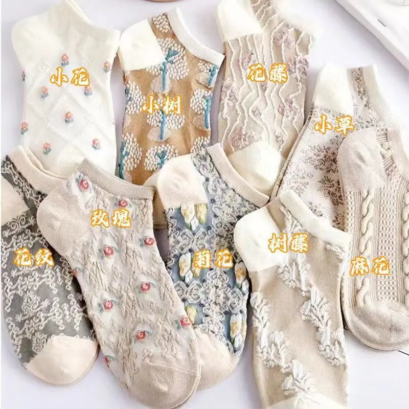📚 【6双】文艺复古袜子女可爱风百搭短袜夏季薄款碎花隐形浅口船袜