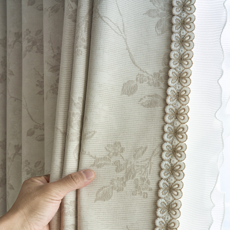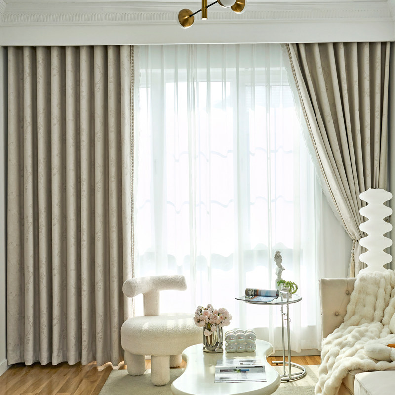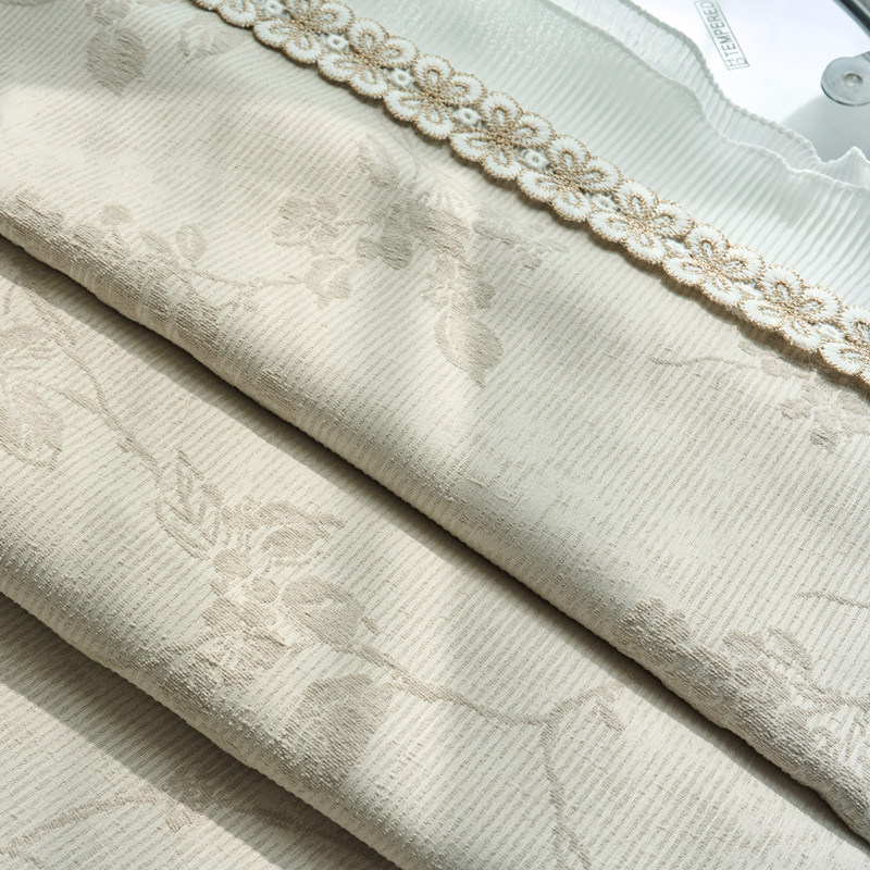 📚 立体3D浮雕提花雪尼尔全遮光窗帘奶杏色成品客厅落地轻奢飘窗定制