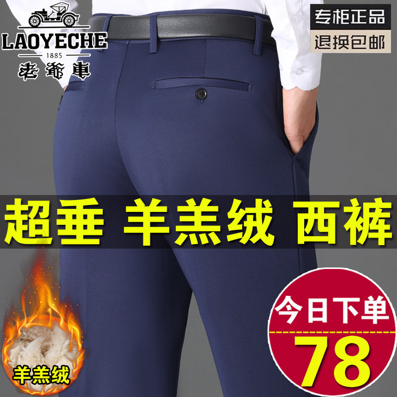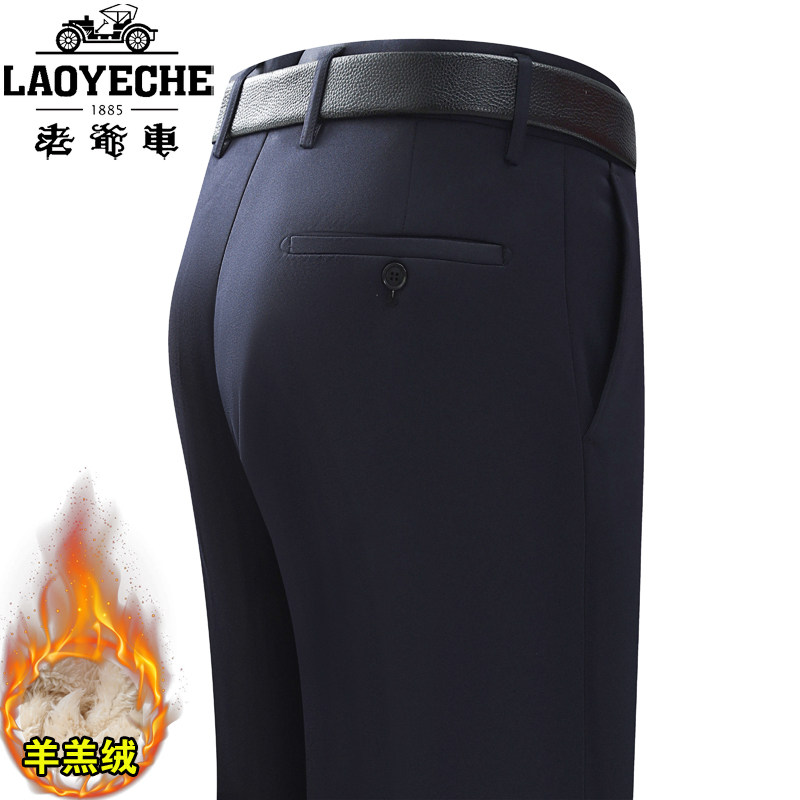 📚 老爷车爸爸加绒裤子秋冬季男士西裤加厚款羊羔绒男裤中老年人棉裤