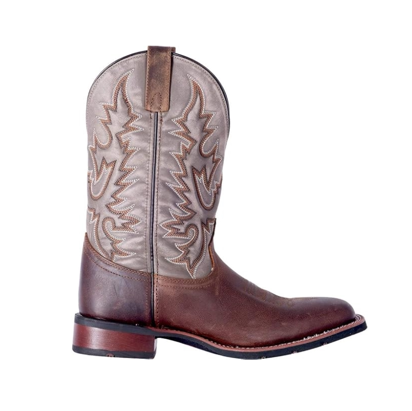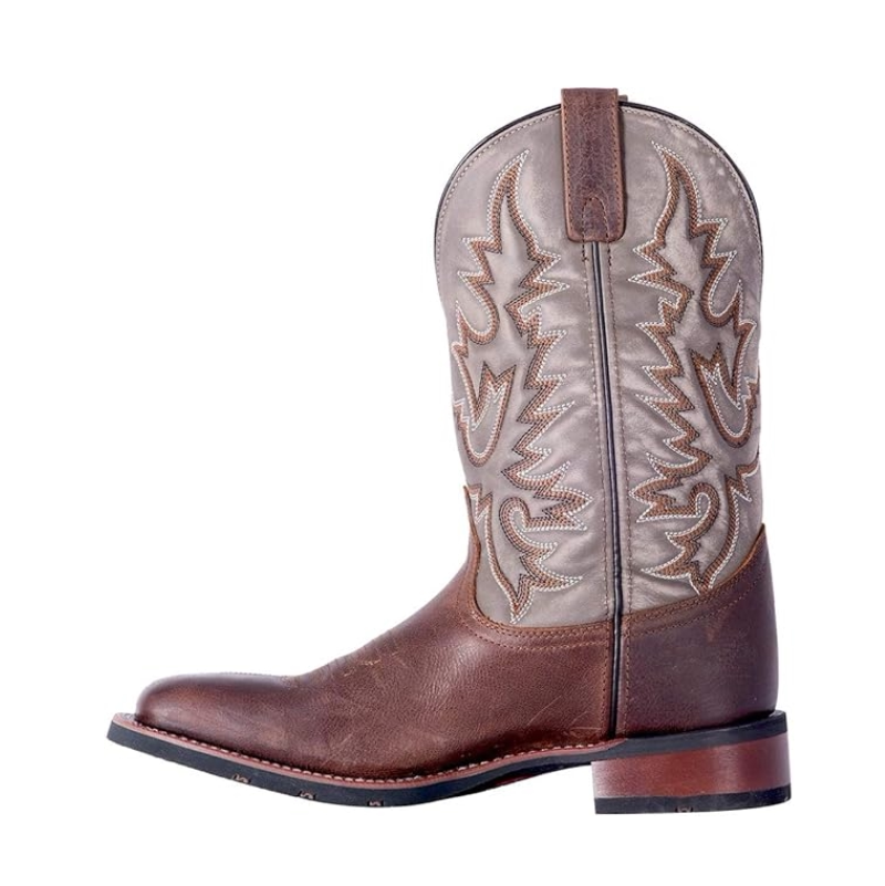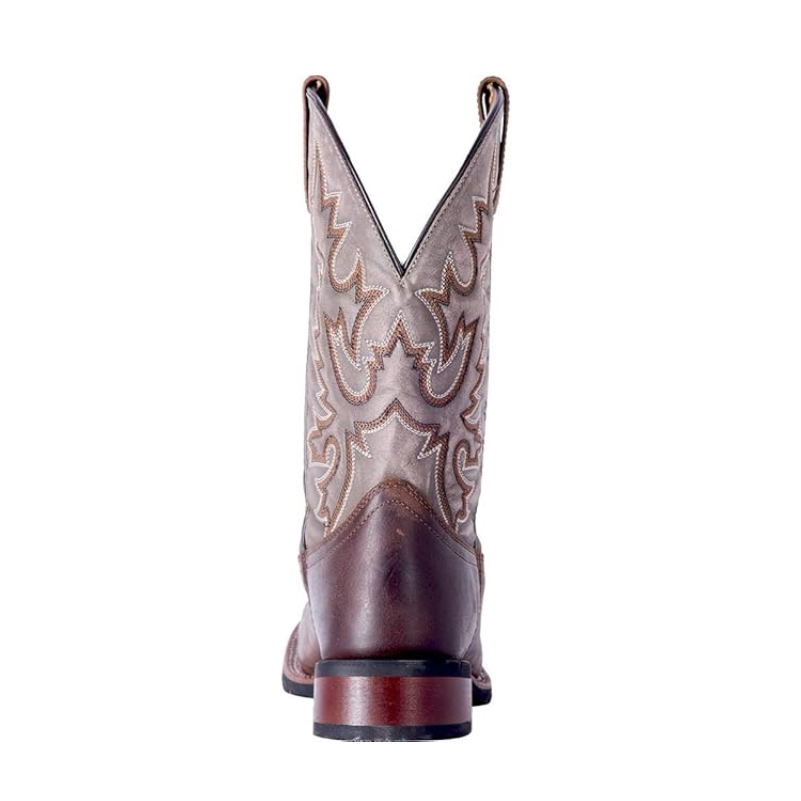 📚 美国代购Laredo男靴深棕灰拼接刺绣西部牛仔方头高帮靴