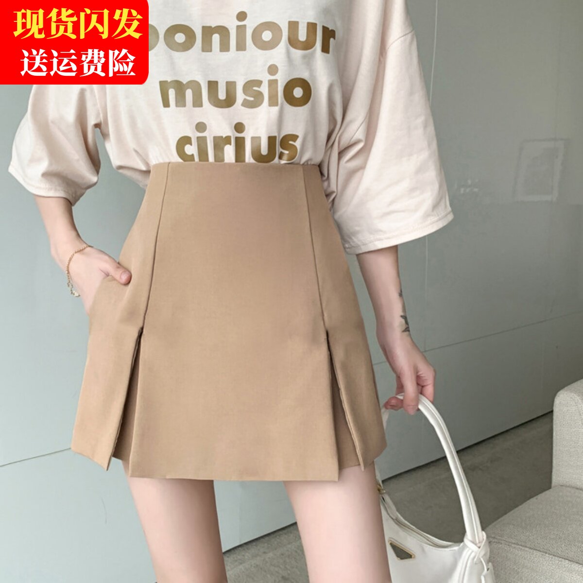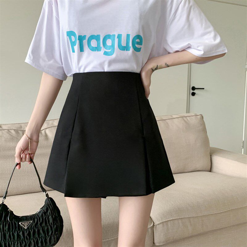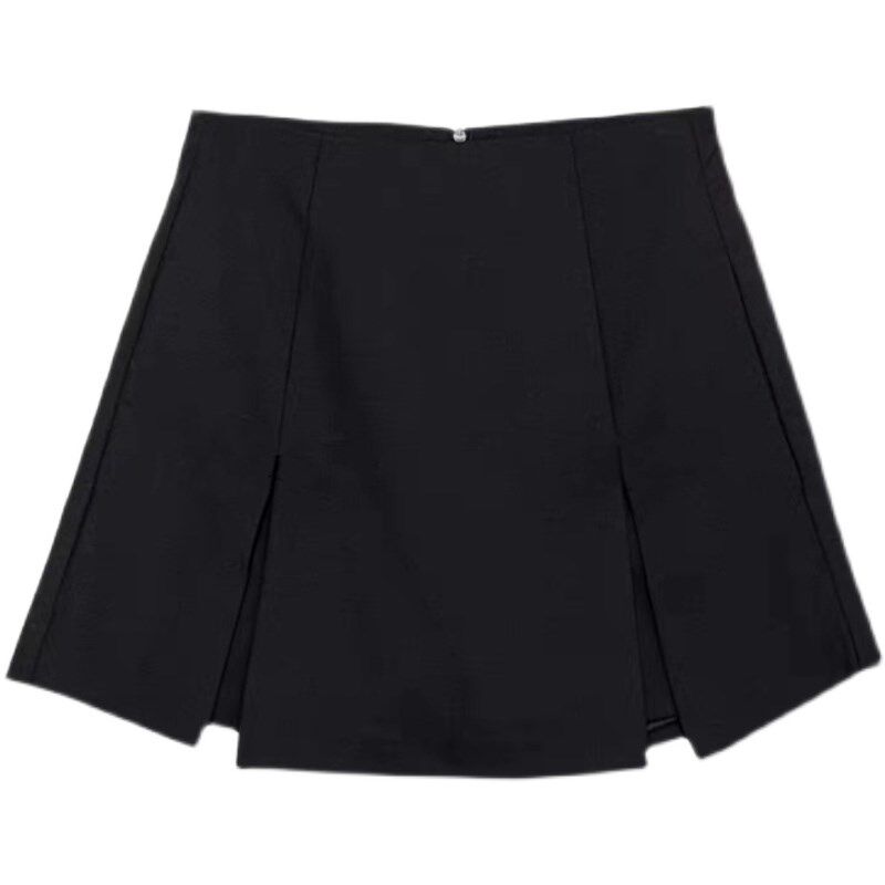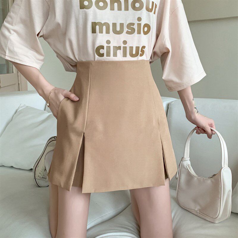 📚 开叉高腰半身裙女夏百搭西装裙裤大码胖mm口袋裤裙黑色a字短裙子