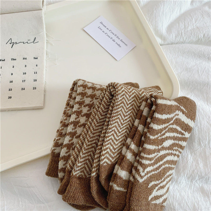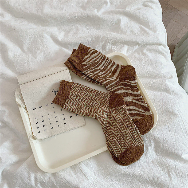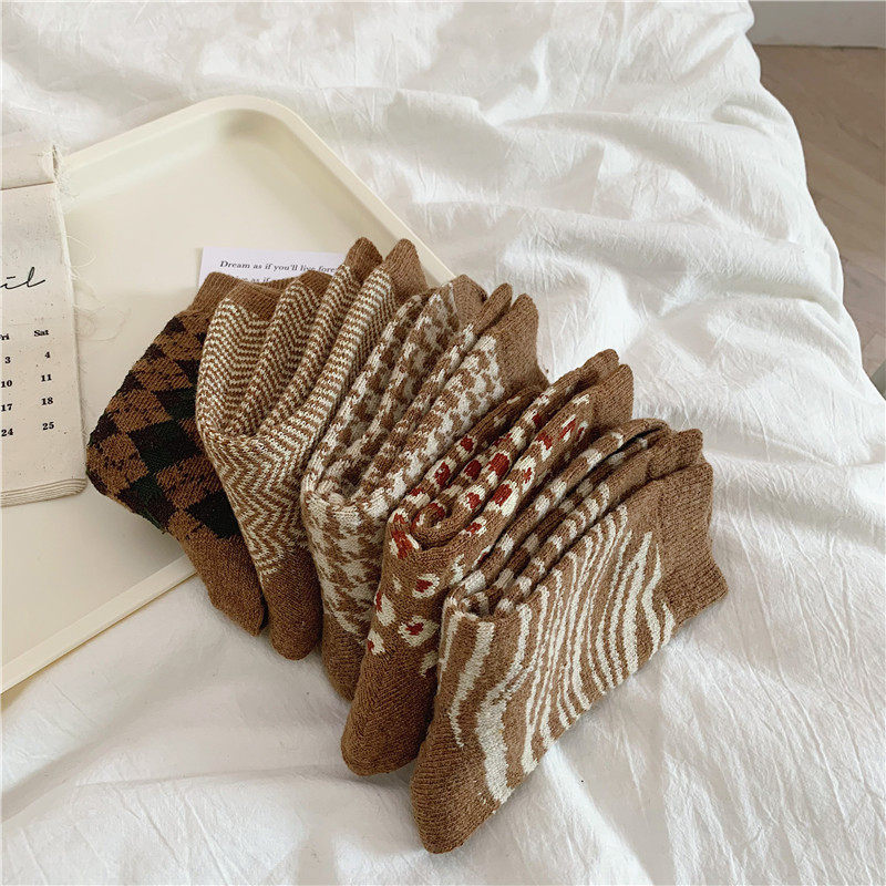 📚 【秋冬复古色系】满5包 邮 加厚中筒女袜 保暖羊毛袜 复古ins风袜