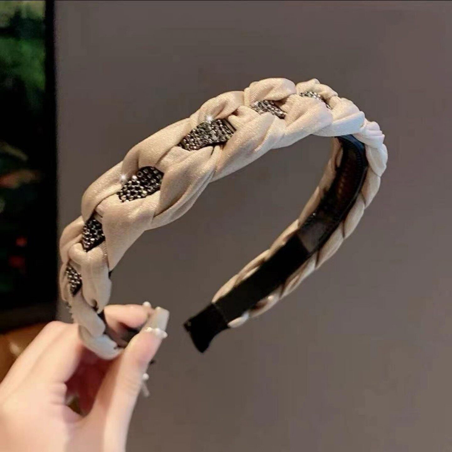 📚 2026新款百搭外出发箍宽边编织辫子水钻麻花发卡带齿防滑洗脸头箍