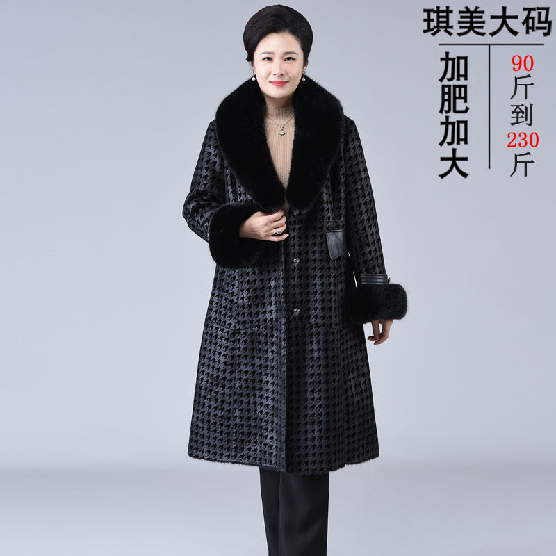 📚 230斤皮草外套女款流行皮毛一体大衣 貂皮中老年妈妈冬装厚款