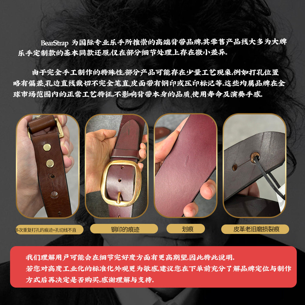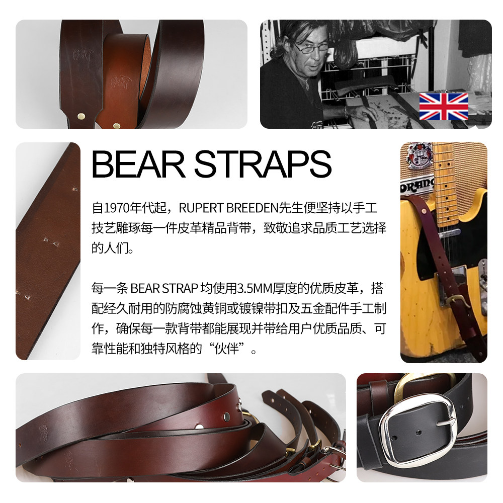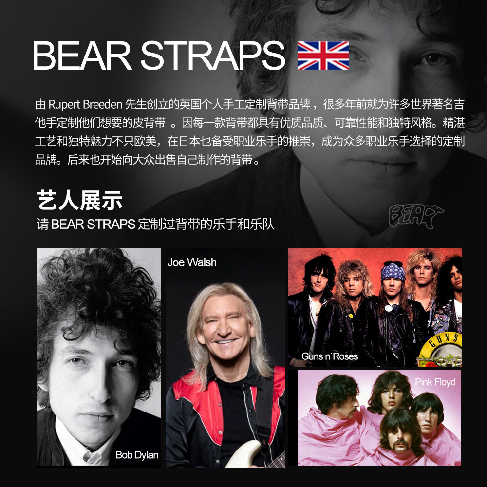 📚 英国BEAR STRAPS大师同款Bob Dylan手工定制高端电吉他贝斯皮背带