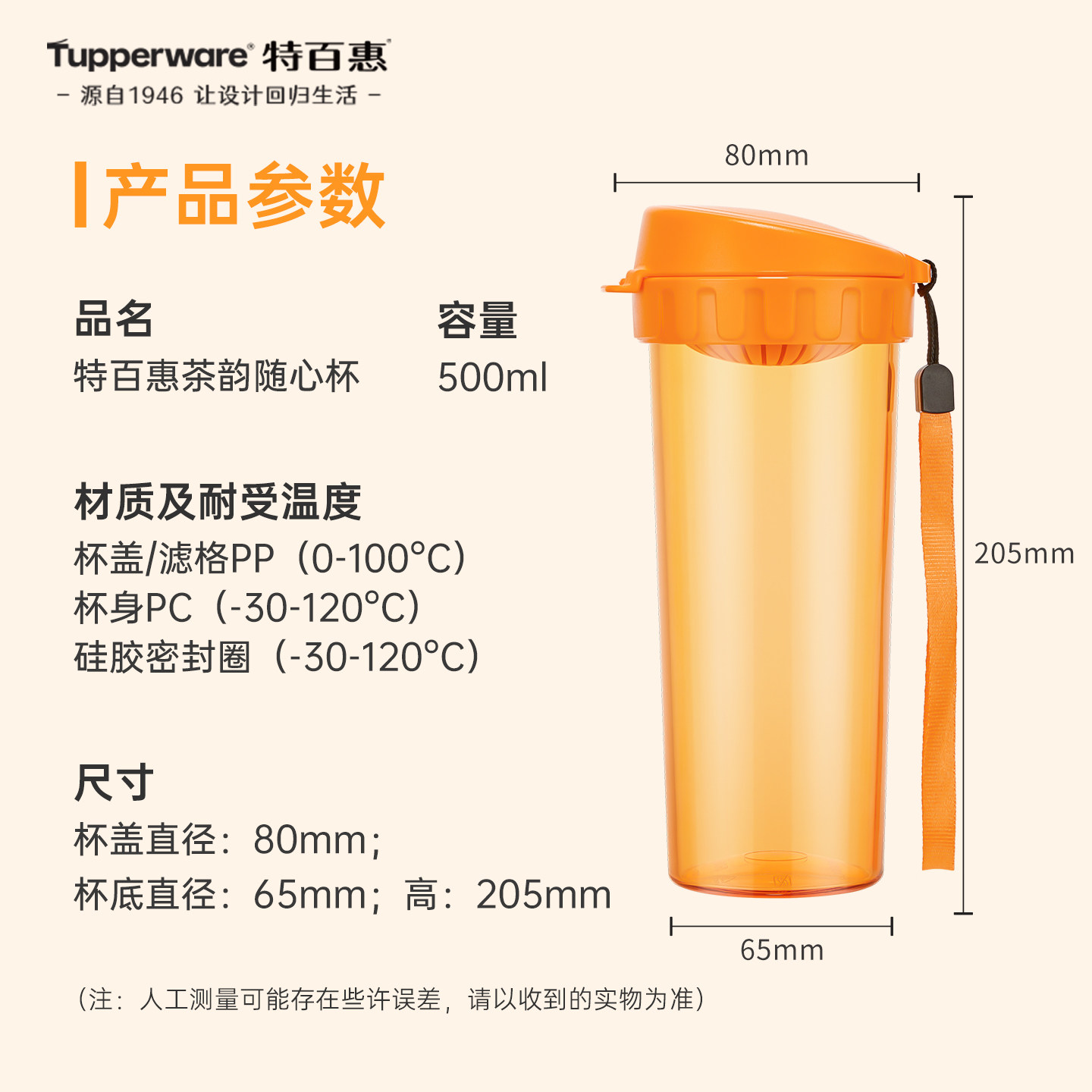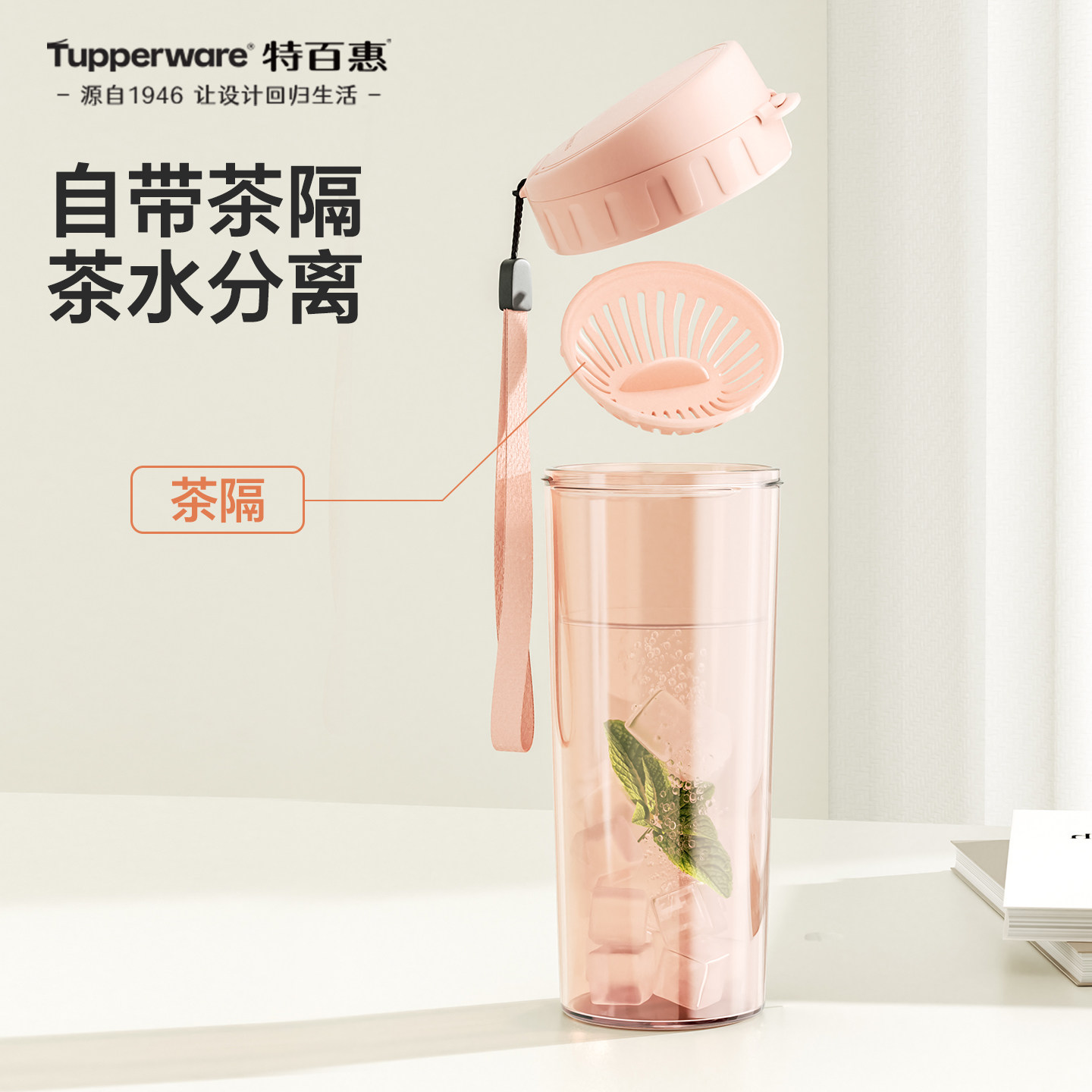 📚 特百惠茶韵水杯500ML大容量便携学生高颜值耐高温塑料杯子带茶隔