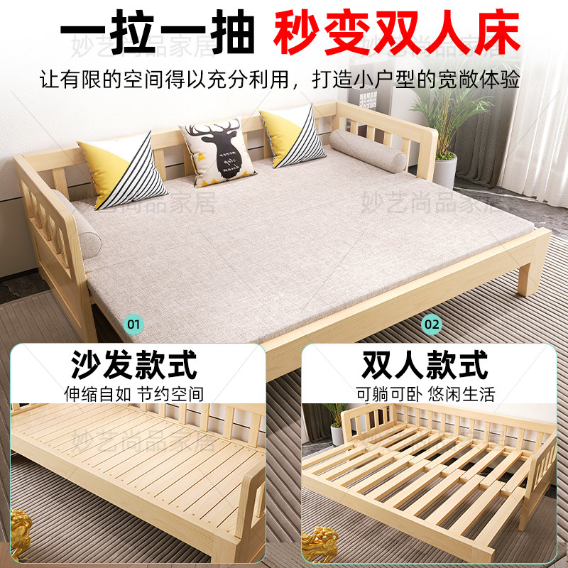 📚 多功能实木沙发床可折叠客厅小户型推拉伸缩两用双人1.2抽拉1.5米
