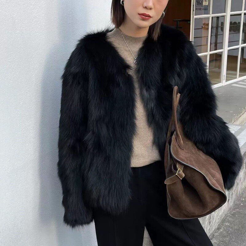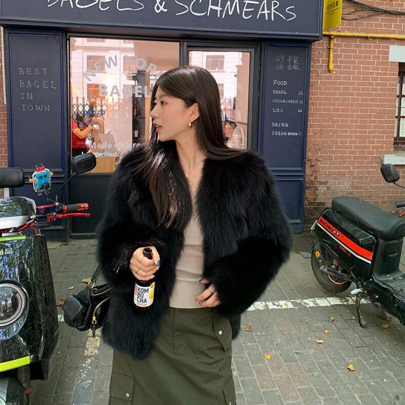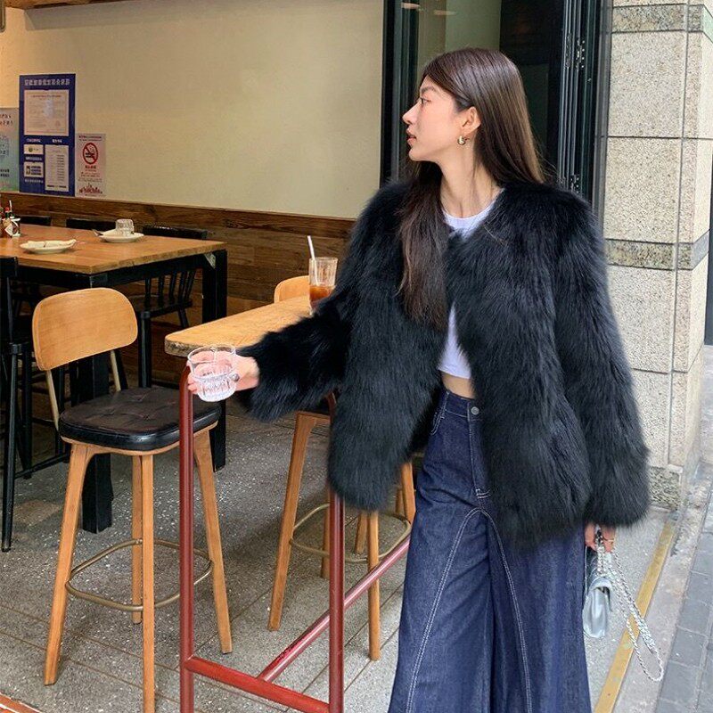 📚 黑色狐狸毛皮草外套女年轻2025秋冬新款环保皮草皮毛一体毛毛大衣
