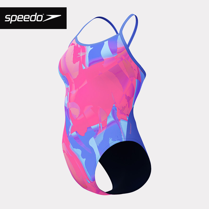 📚 Speedo/速比涛女士塑形印花不对称连体泳衣时尚遮肚度假竞速泳衣