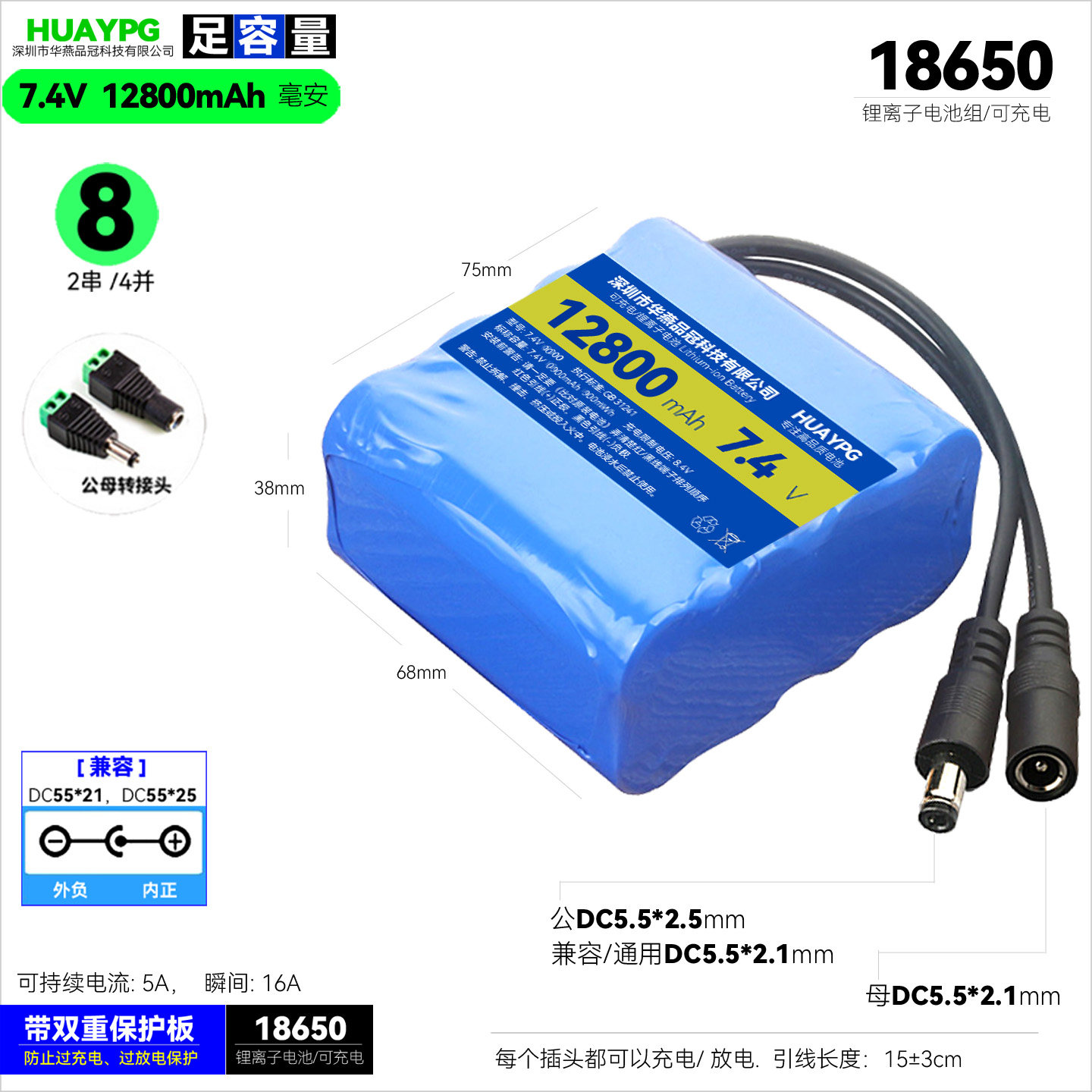 📚 18650锂电池组7.4V便携外插DC5.5头带保护板9V户外音响8.4V打窝船