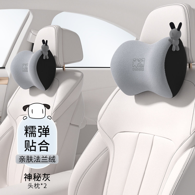可拆式汽车头枕一对护颈枕可爱卡通车用记忆棉靠枕车载座椅腰靠垫