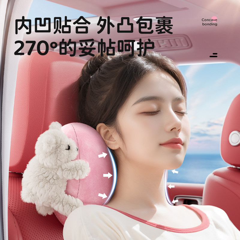 📚 可拆式汽车头枕一对护颈枕可爱卡通车用记忆棉靠枕车载座椅腰靠垫