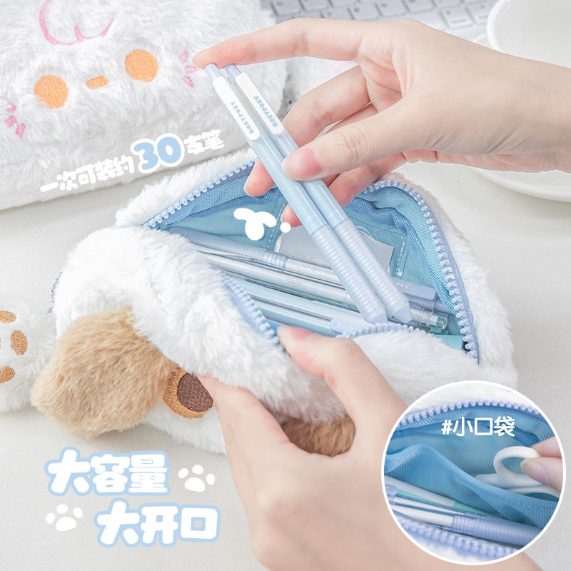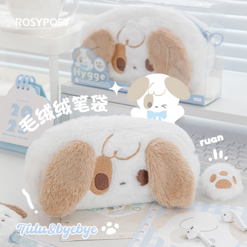 📚 跨境 新款 2025Hygge毛绒笔袋 软萌毛茸茸收纳包带毛绒刺绣小挂件