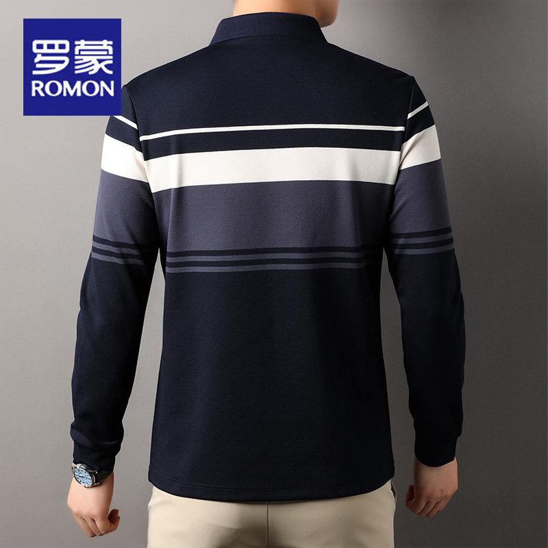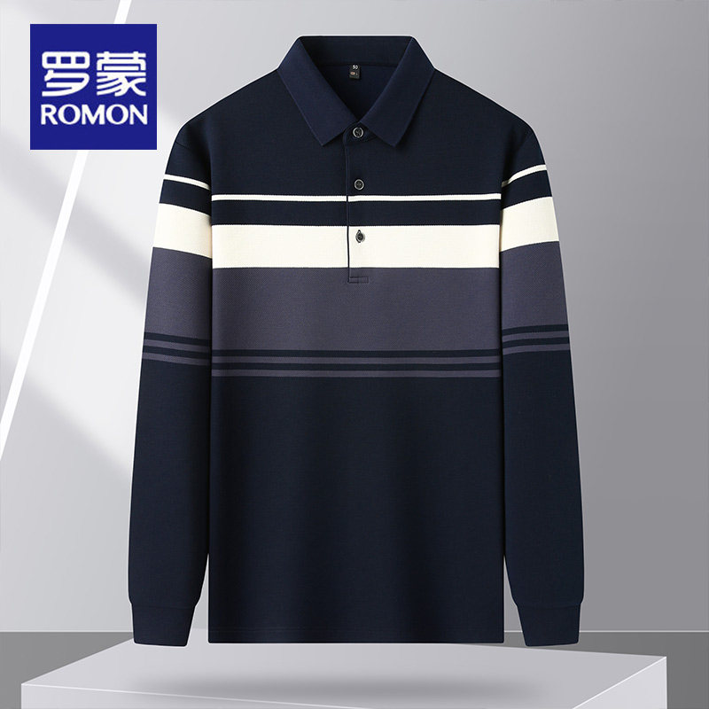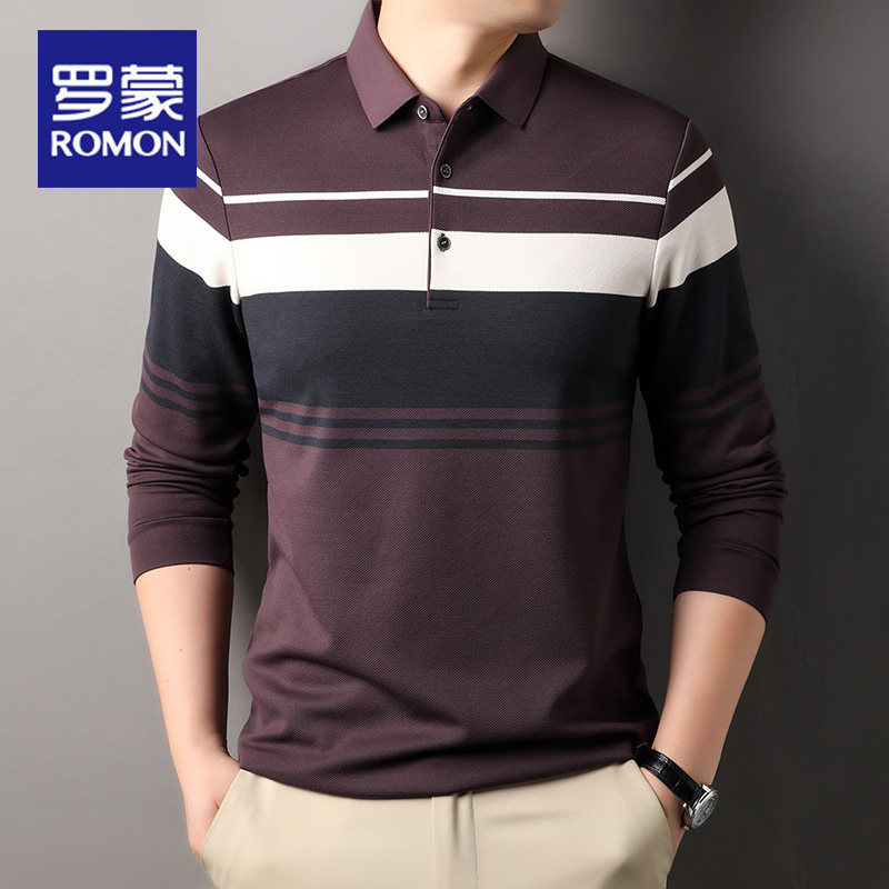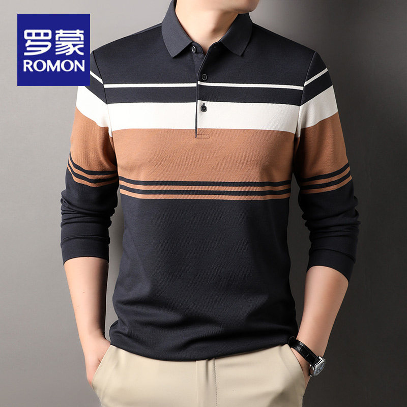 📚 罗蒙翻领条纹POLO衫长袖男2025春秋新款上衣高级感免烫百搭T恤衫