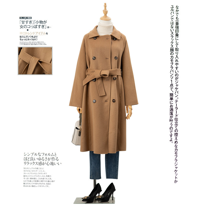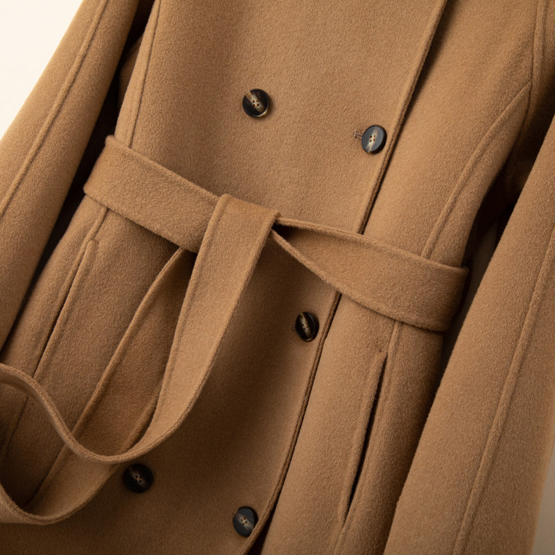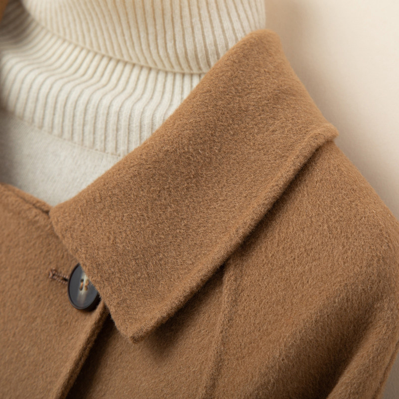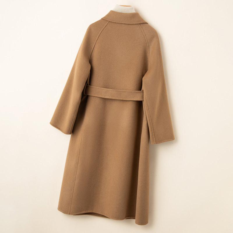 📚 秋冬新款双面羊绒大衣女娃娃领长款过膝系带插肩袖纯羊毛呢子外套