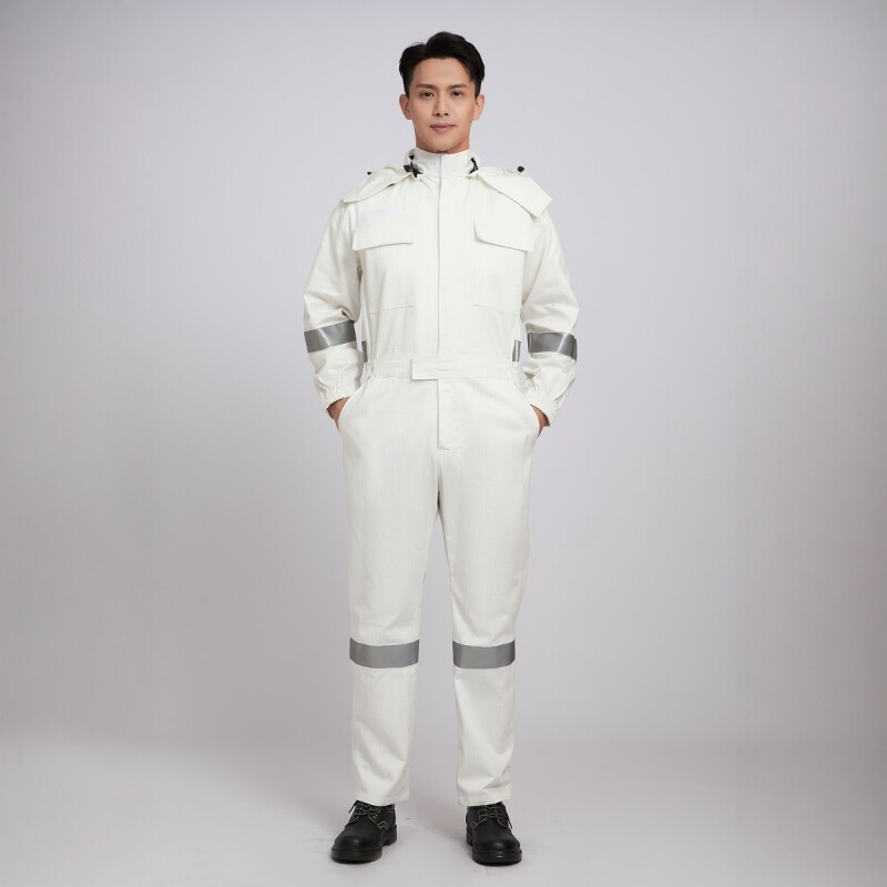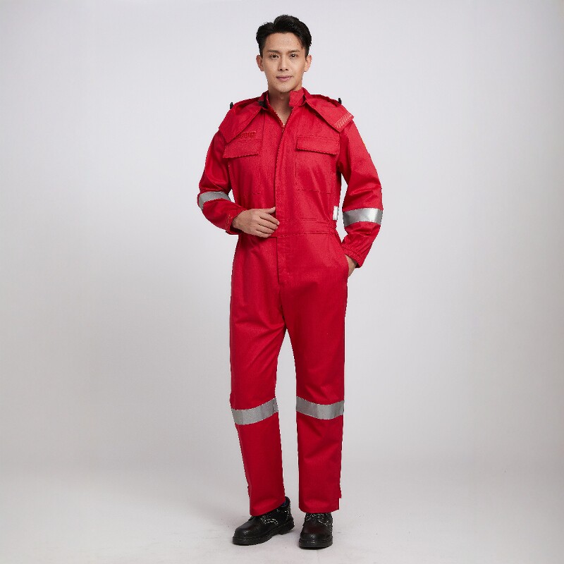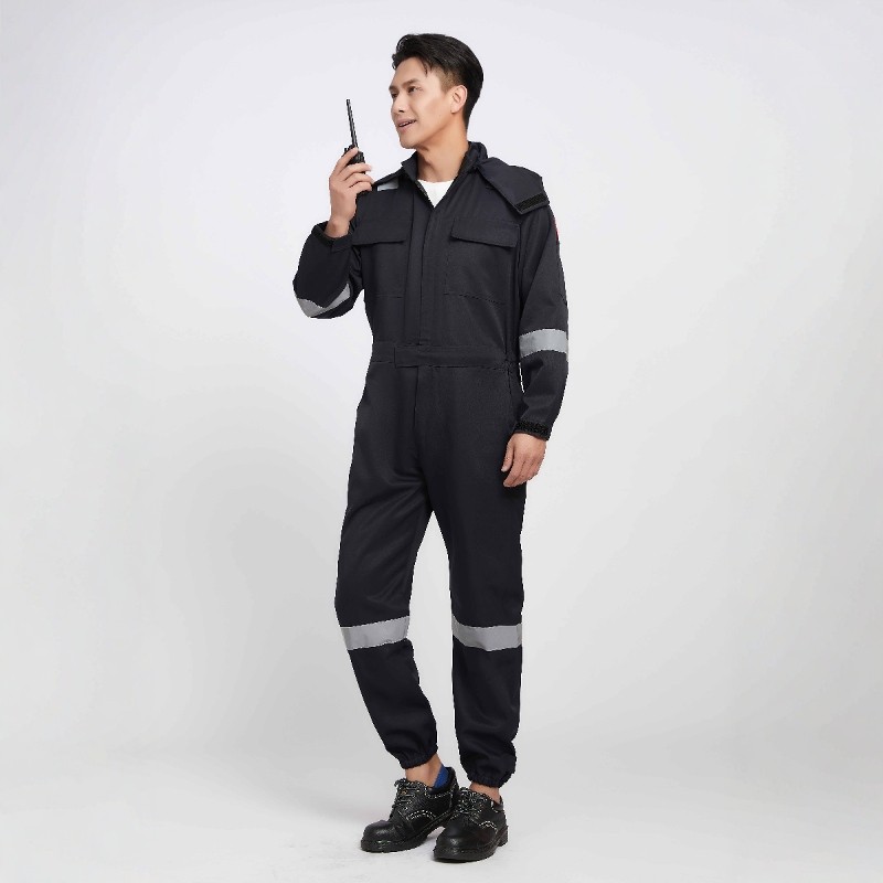 📚 抗水拒阻燃耐酸碱反光纯棉连体工作服船员防静电劳保服造船厂海员