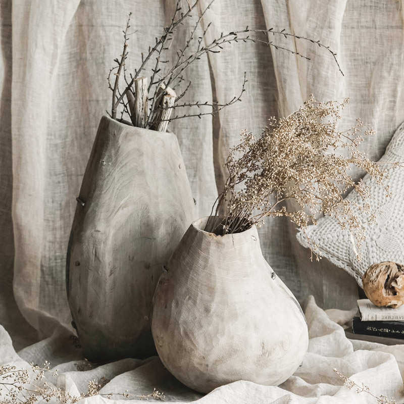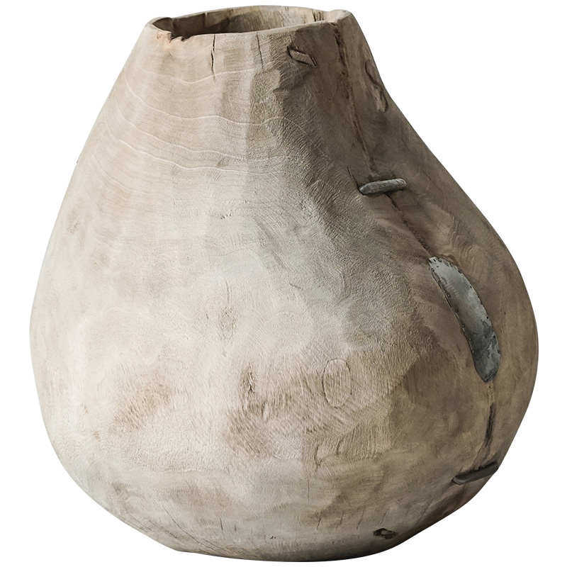 📚 侘寂风老木圆底大花瓶手工制作复古做旧民宿客厅落地摆件实木花器