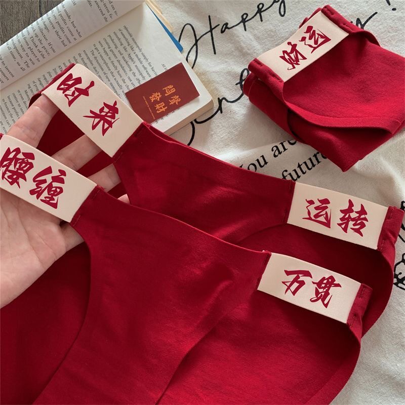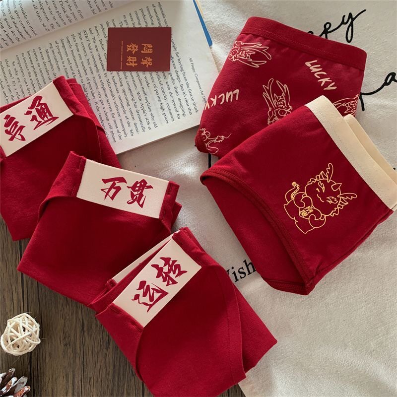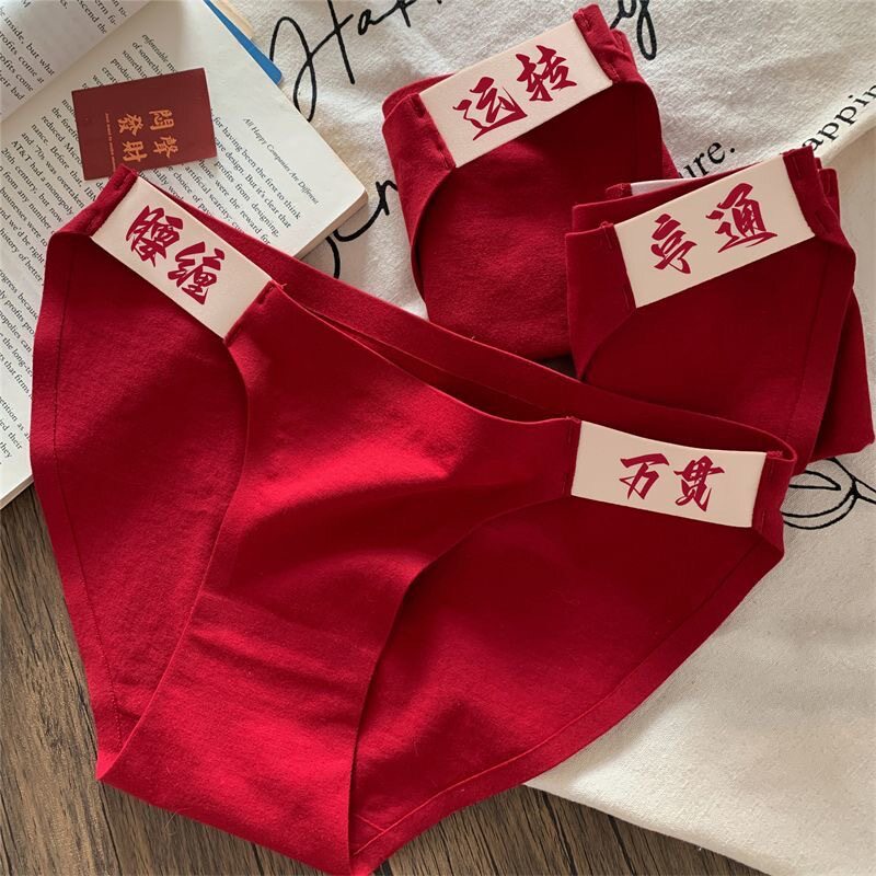 📚 红色内裤女纯棉新郎新娘情侣本命年马年男士大红喜庆夫妻结婚大码