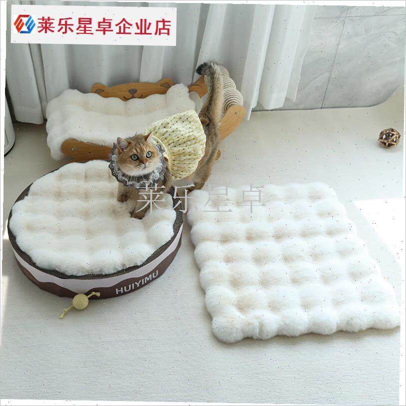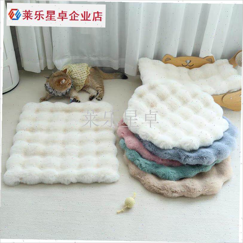 📚 兔毛绒猫窝垫子j狗窝睡眠圆形坐垫宠物床睡觉毛垫秋冬保暖猫咪地.