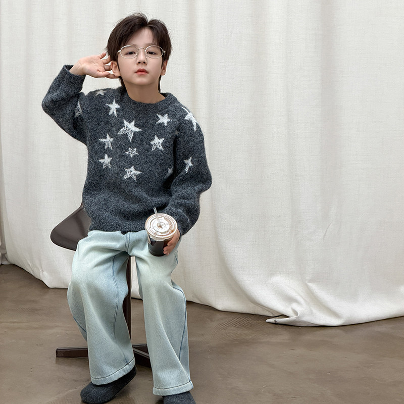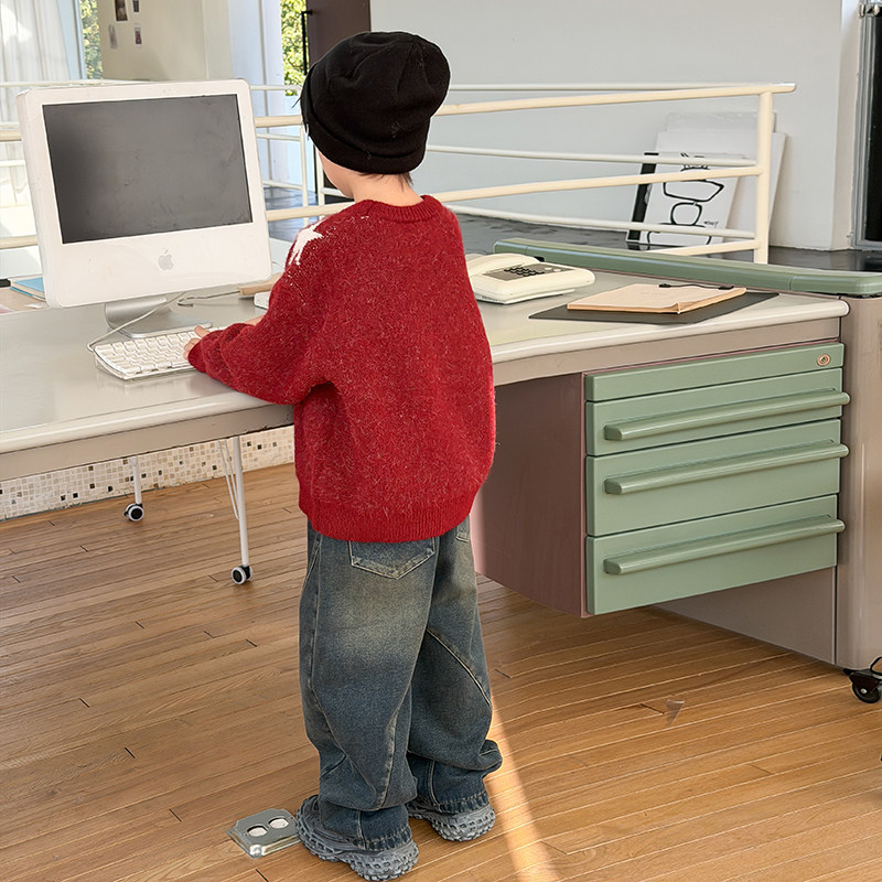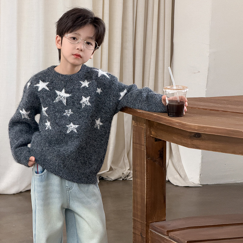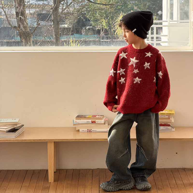📚 依依妈男童加厚毛衣儿童冬装宝宝宽松羊毛拜年服打底套头针织衫潮