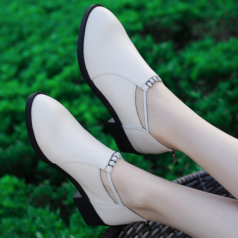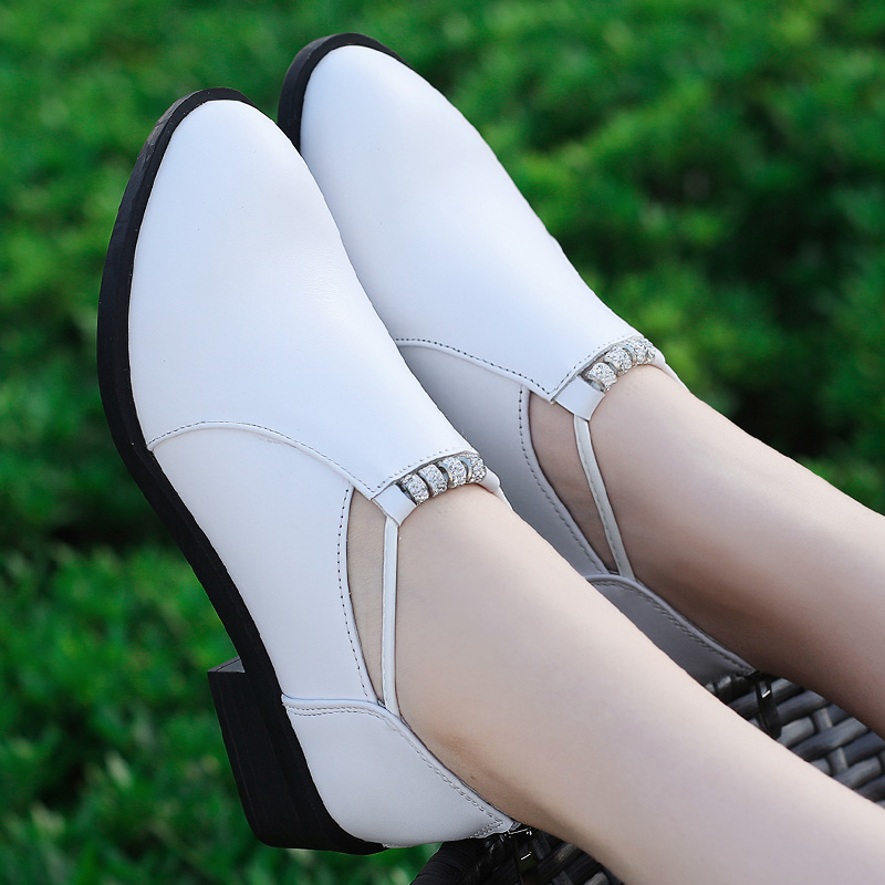 📚 单鞋女2026新款春秋女鞋中跟百搭粗跟真皮鞋软底白色休闲四季鞋子
