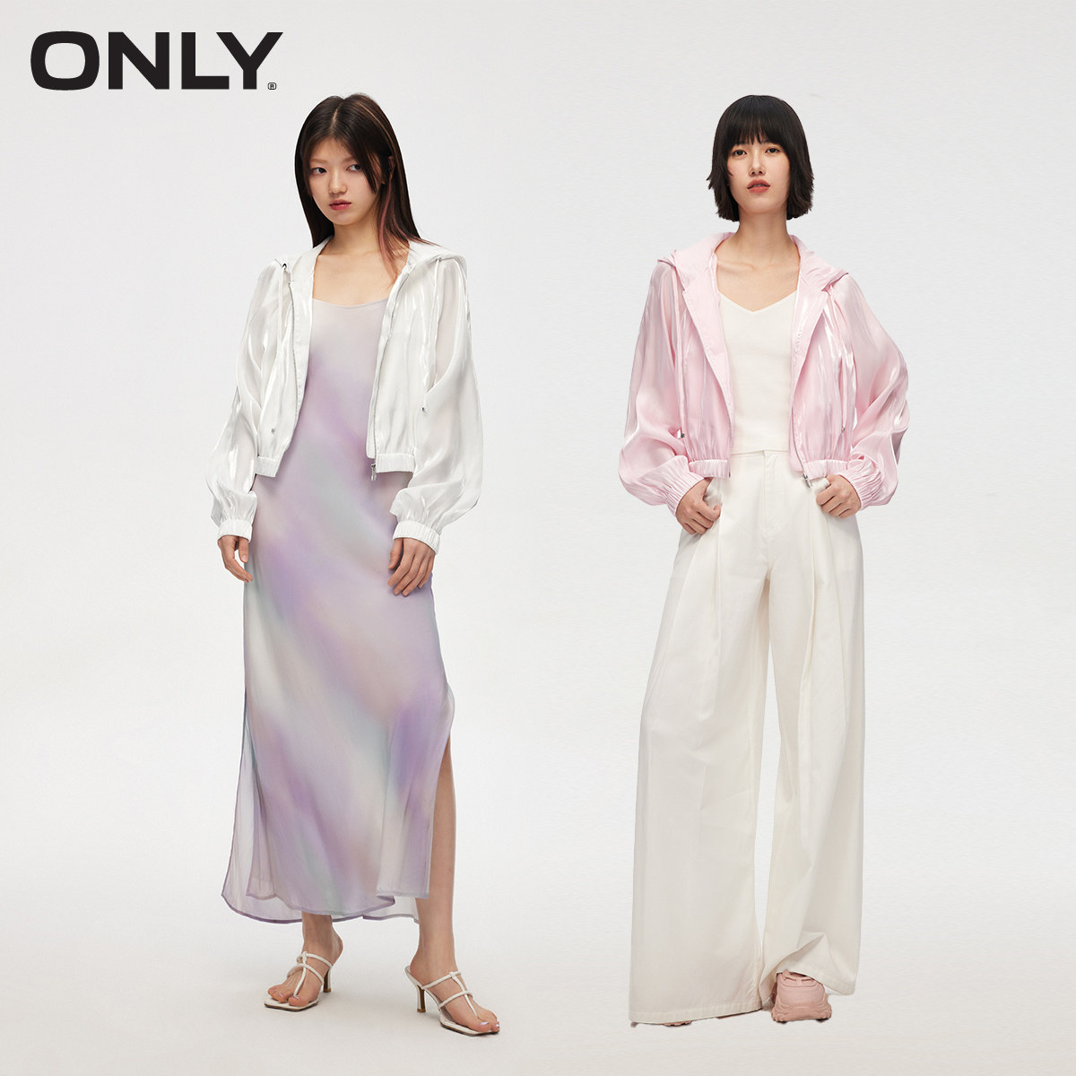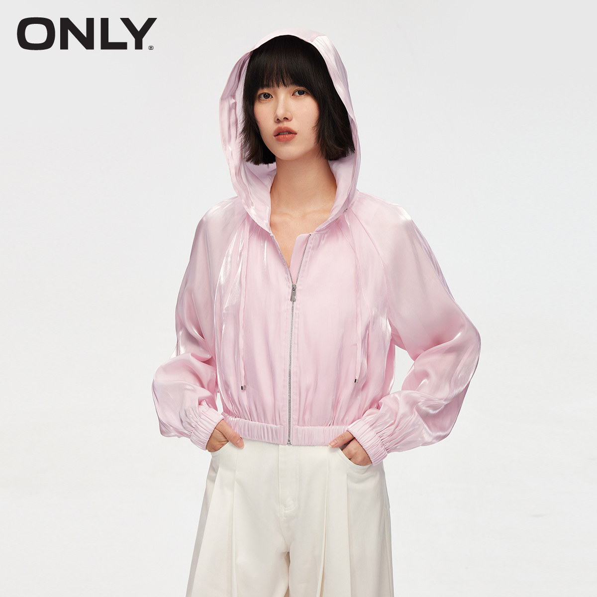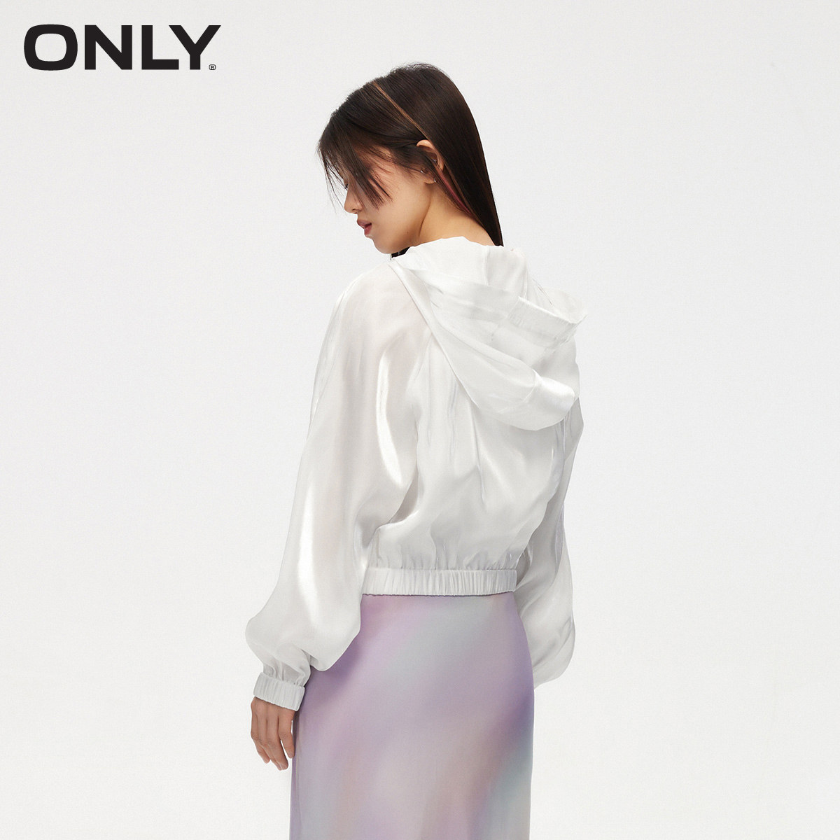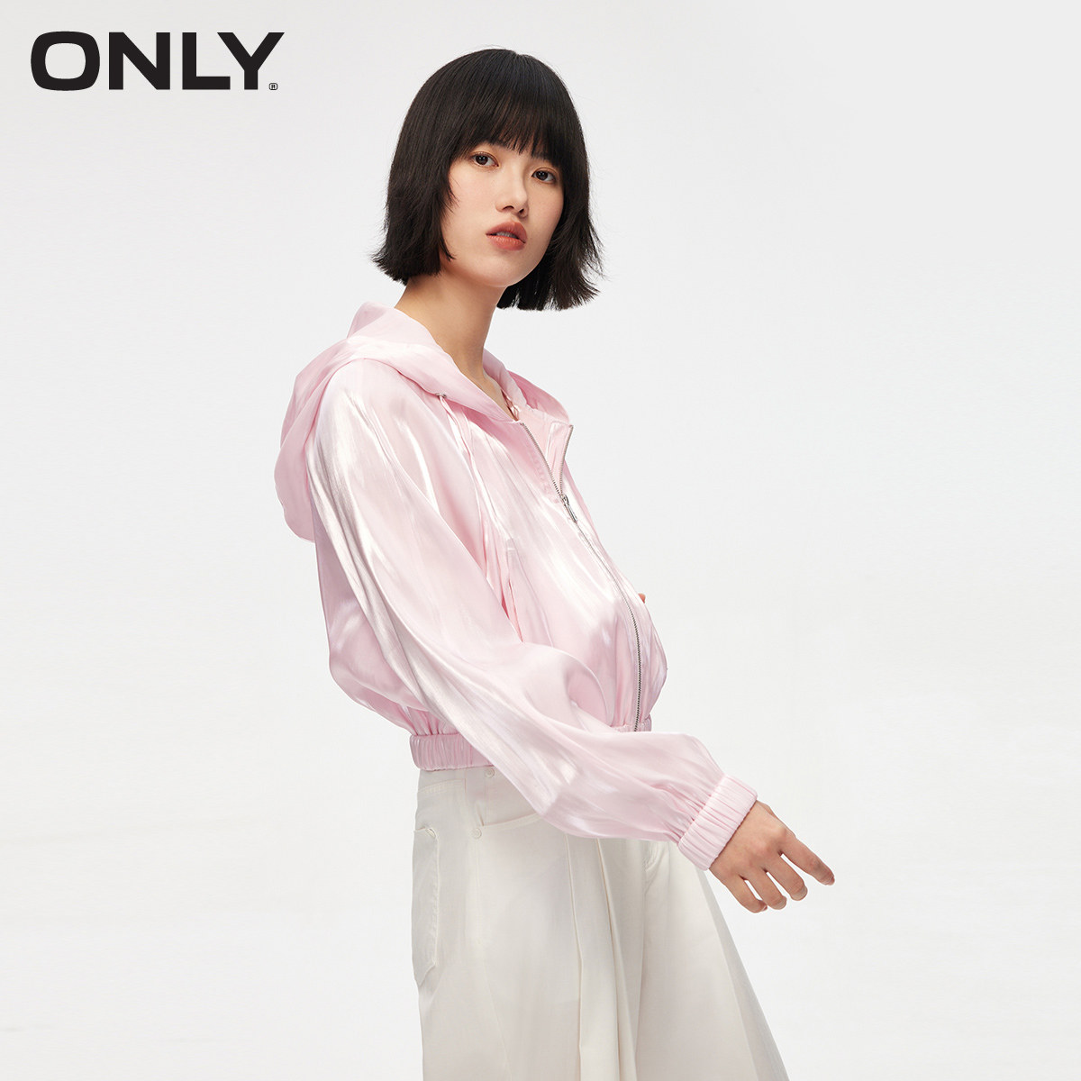 📚 ONLY春季时尚潮酷休闲百搭蝙蝠袖光泽感短款连帽薄外套女