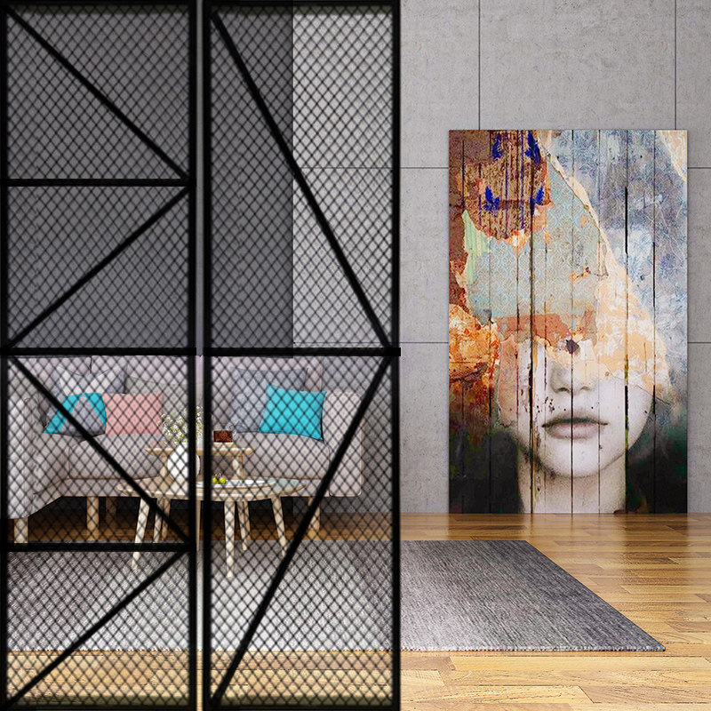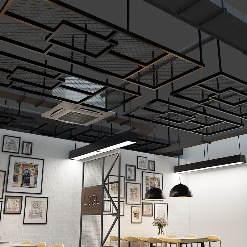 📚 工业风铁网吊顶客厅餐厅铁艺隔断屏风菱形网格背景隔断墙落地展架