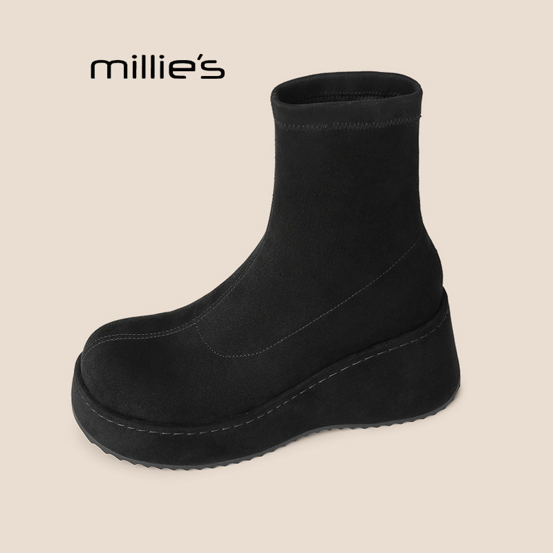 📚 MILLIE'S/妙丽2026新款秋冬真皮短筒瘦瘦靴袜靴小个子女靴弹力靴Z