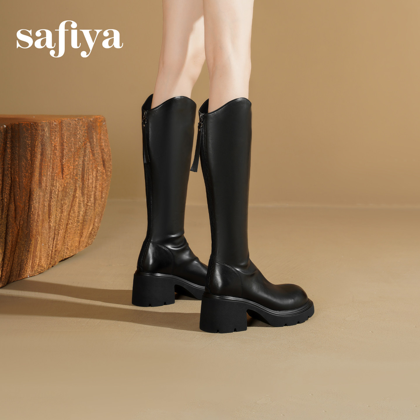 📚 索菲娅黑色长筒骑士靴女靴2025冬季新品厚底增高显瘦不过膝高筒靴