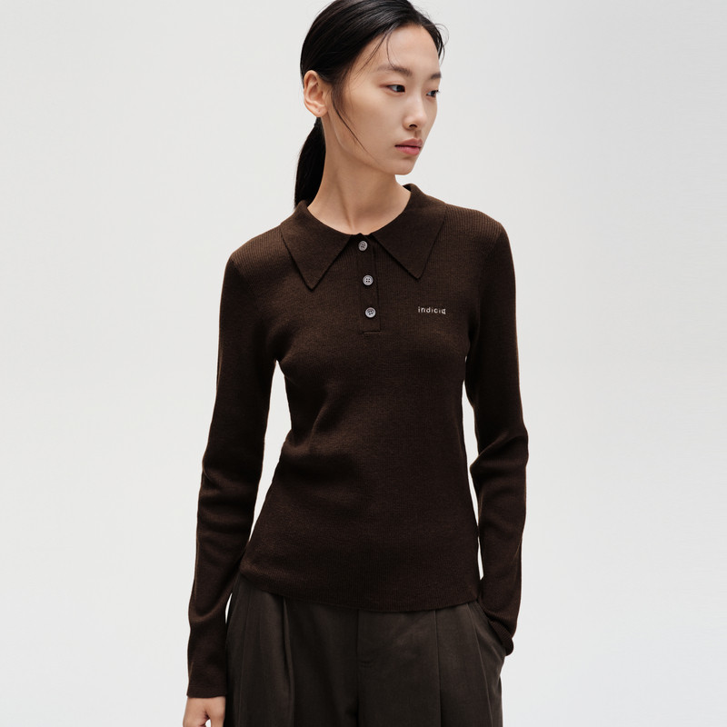 📚 indicia标记商场同款翻领针织衫修身上衣秋冬季女装F2C4SY441F