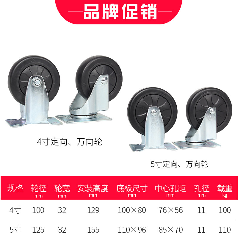 📚 4寸5寸手推车平板车定向万向刹车轮子小推车滑轮小拖车橡胶车轱辘