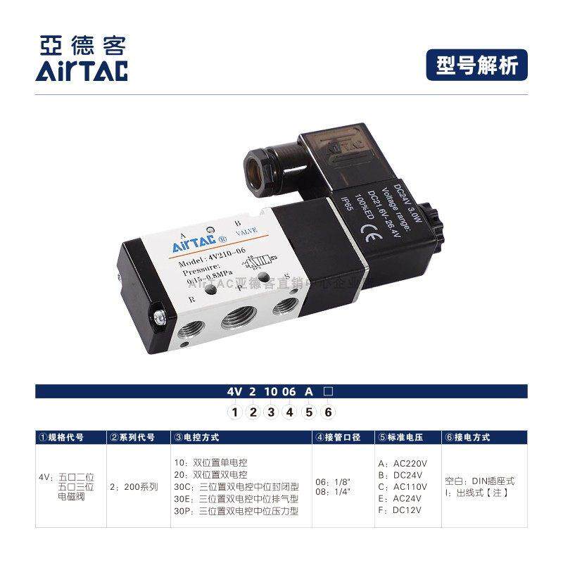 📚 AirTAC原装亚德客两位五通电磁阀 4V210-08 4V21008B 4V21008A/C
