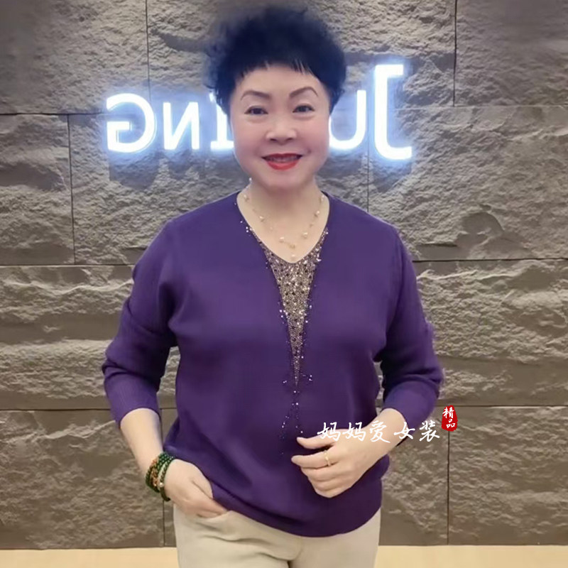📚 秋冬新款时尚上衣洋气长袖针织减龄女装中老年宽松妈妈打底衫毛衣