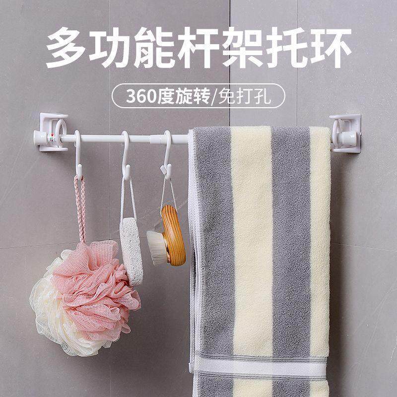 📚 360旋转挂环升级圆环挂杆托毛巾杆粘钩免打孔窗帘浴帘杆托架支架