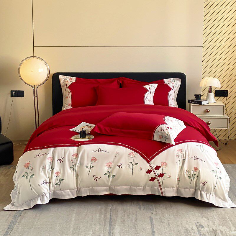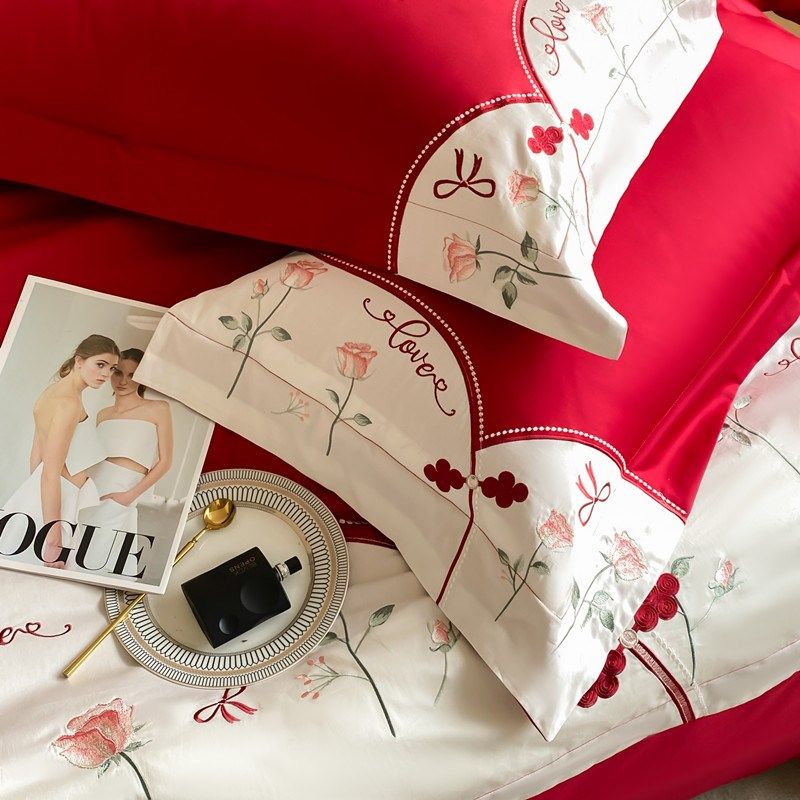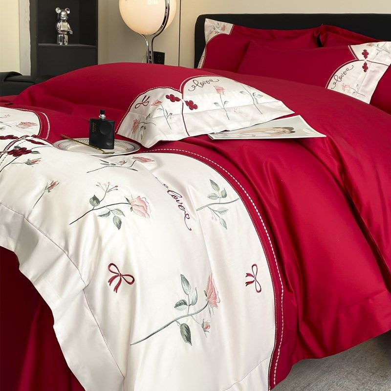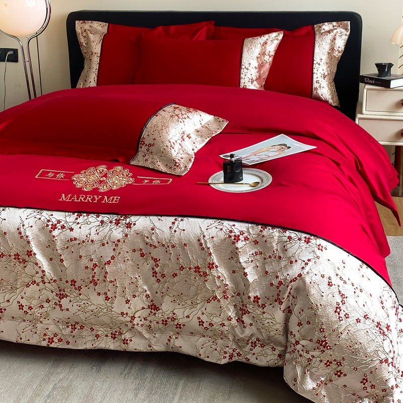 📚 新中式160支长绒棉结婚四件套婚庆红色被套床单喜被婚房床上用品4